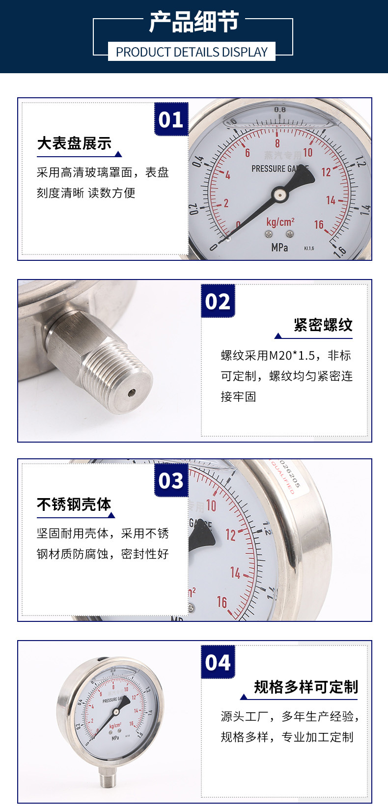 Манометр ударопрочности Y100SS-A