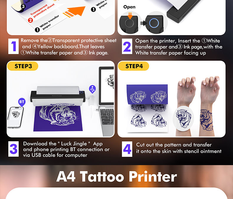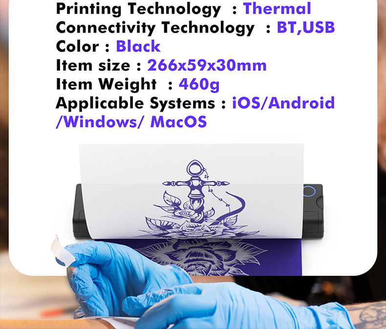 Мини-принтер Bluetooth тепловой принтер офис татуировки принтер татуировки оборудование для татуировки через границу