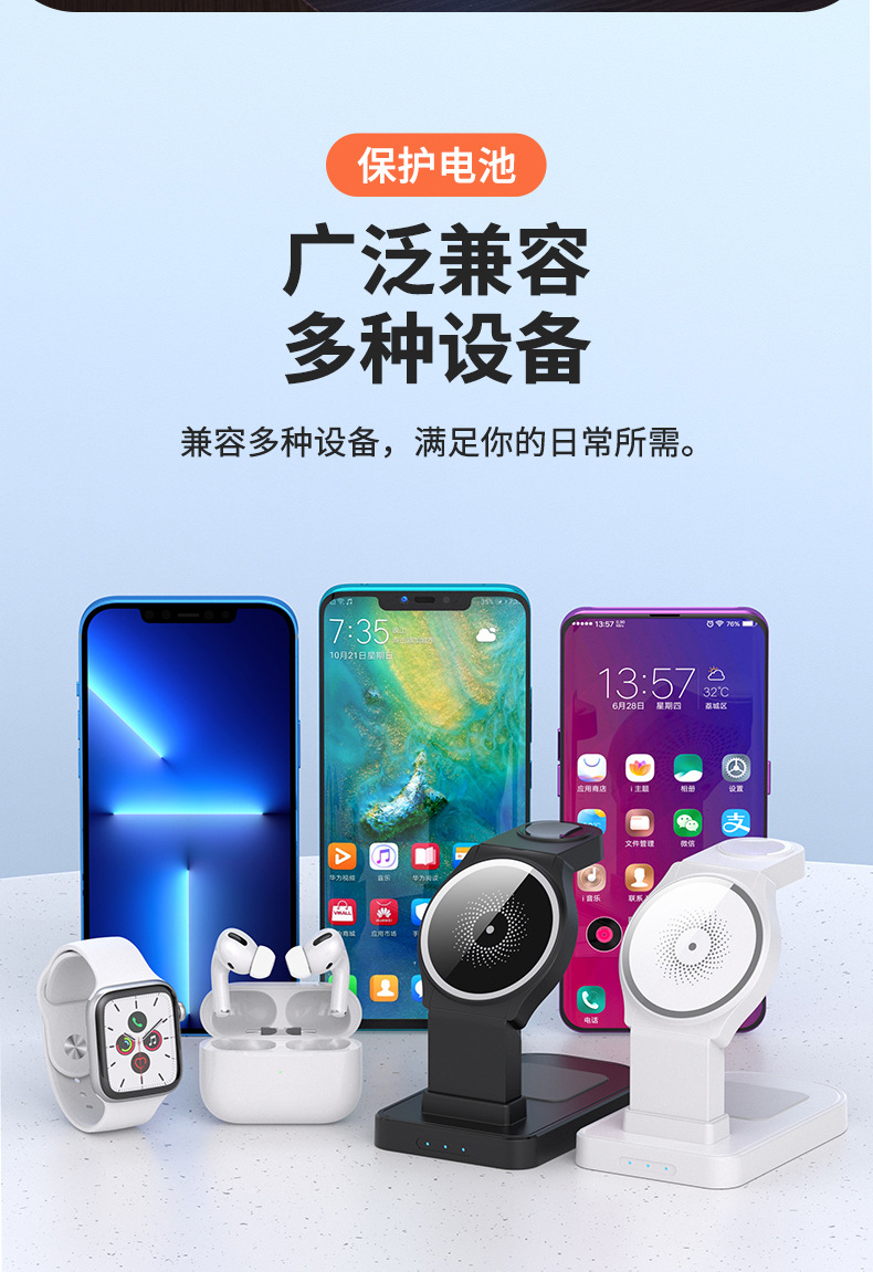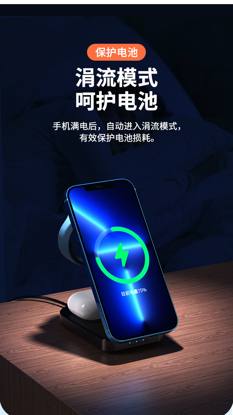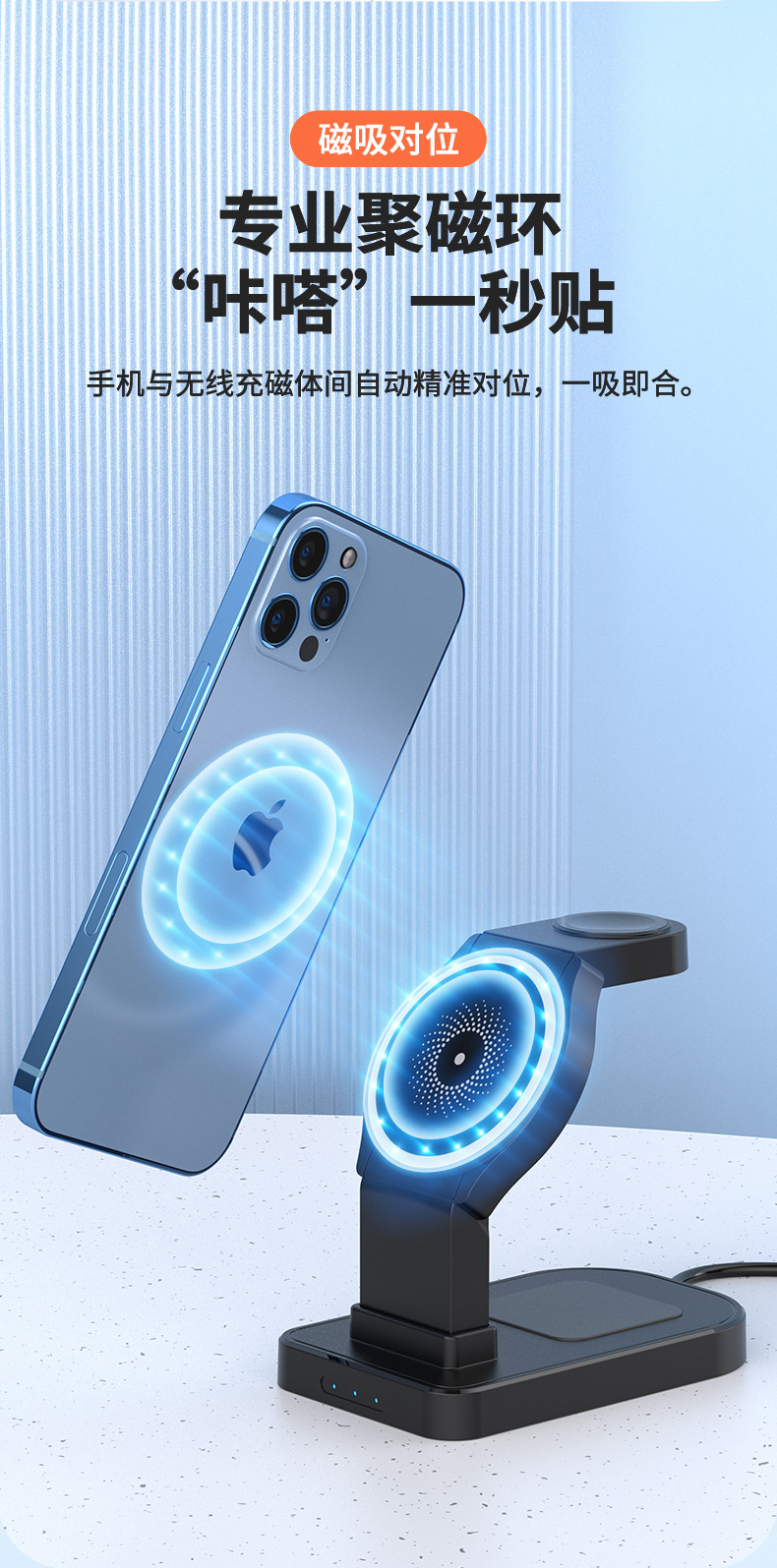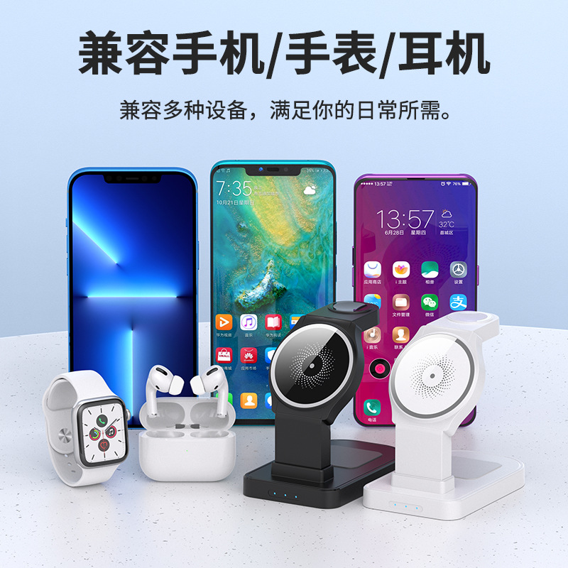 15W Магнитное беспроводное зарядное устройство быстрая зарядка три в одном подходит для Apple 15/14 мобильный телефон наушники часы вертикальный кронштейн