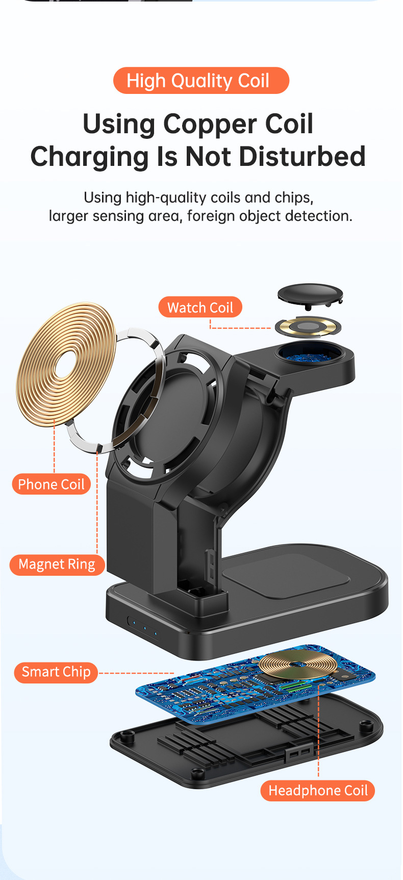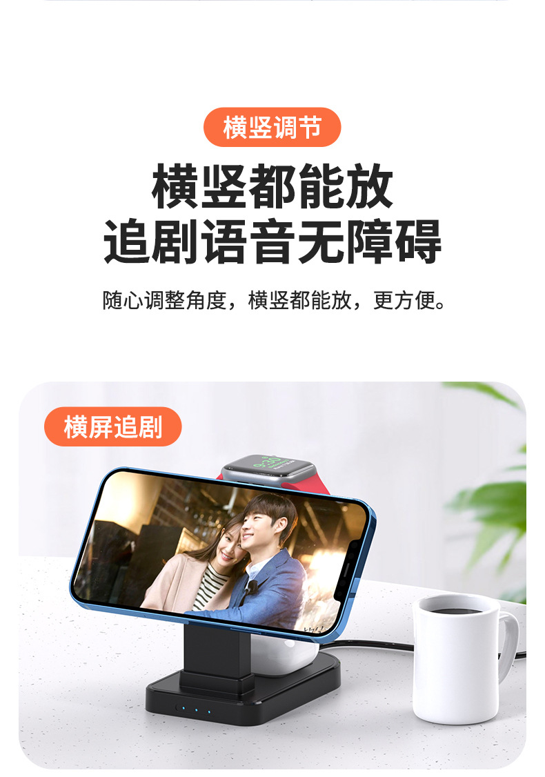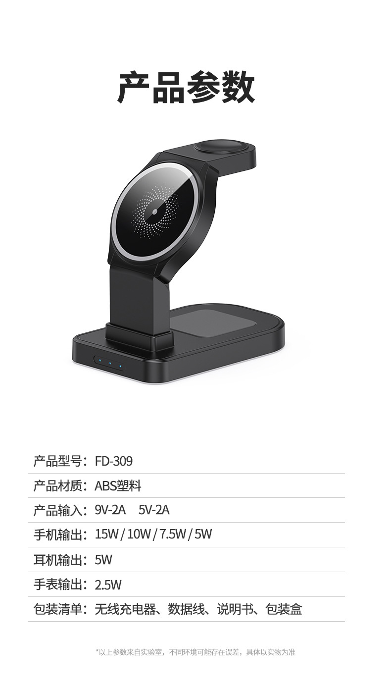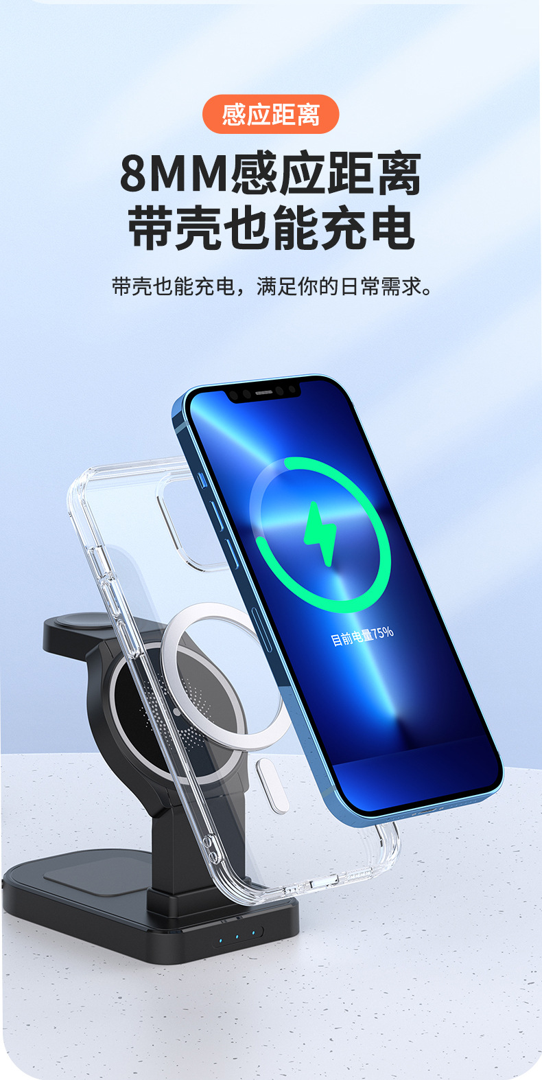15W Магнитное беспроводное зарядное устройство быстрая зарядка три в одном подходит для Apple 15/14 мобильный телефон наушники часы вертикальный кронштейн