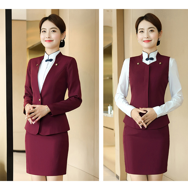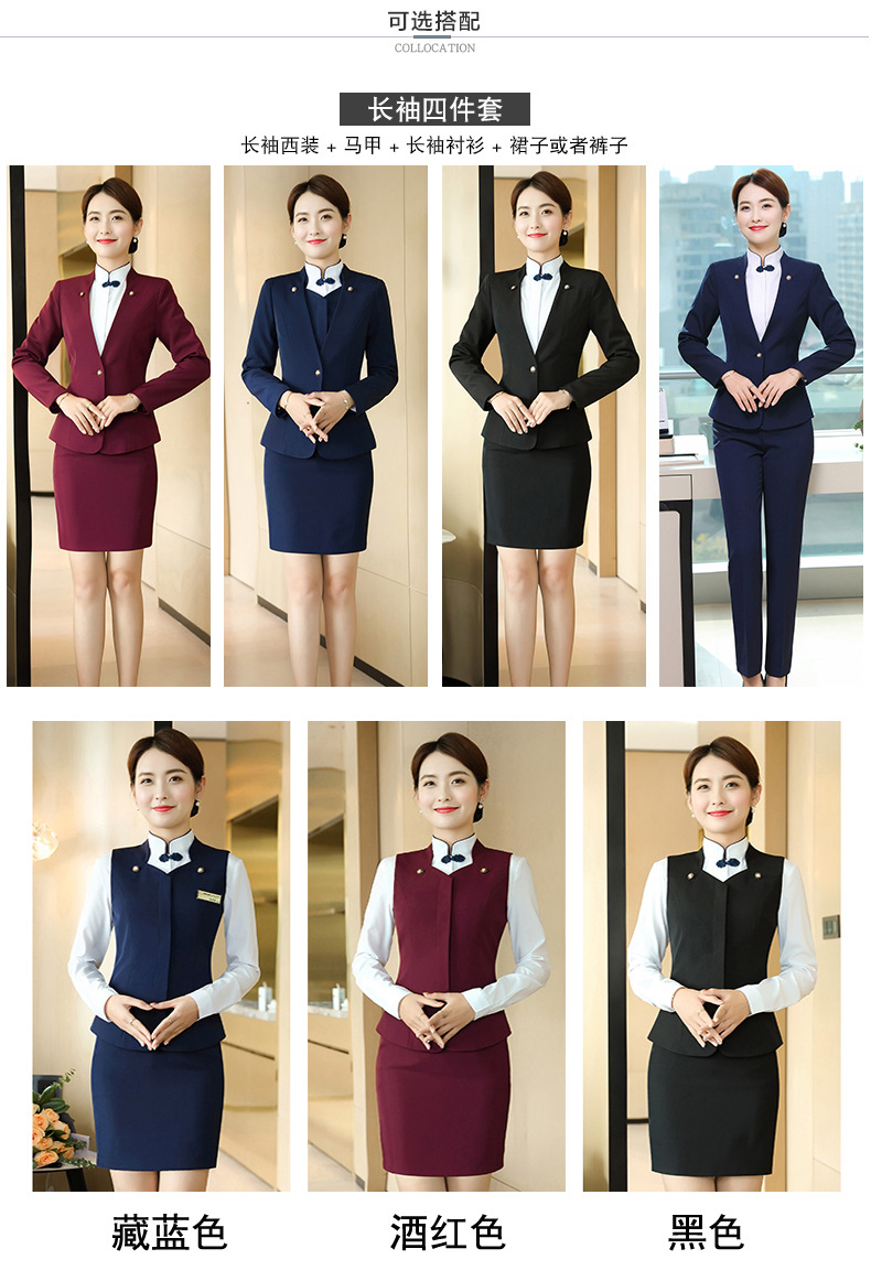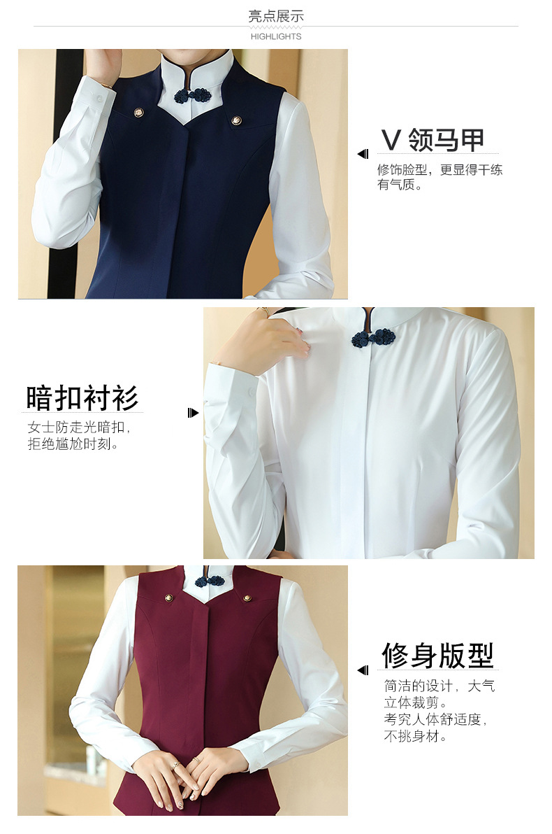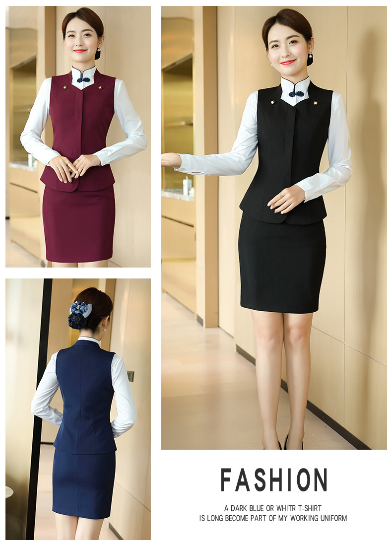 Черный жилет 58 юаней.; Винно-красный жилет 58 юаней.; Темно-синий жилет 58 юаней.; Черная юбка 45 юаней.; Винно-красная юбка 45 юаней.; Темно-синяя юбка 45 юаней.; Черные брюки 50 юаней.; Бордовые брюки 50 юаней.; Темно-синие брюки 50 юаней.; Белая рубашка 50 юаней.; Черная куртка 72 юаня.; Бордовый пиджак 72 юаня.; Темно-синяя куртка 72 юаня.