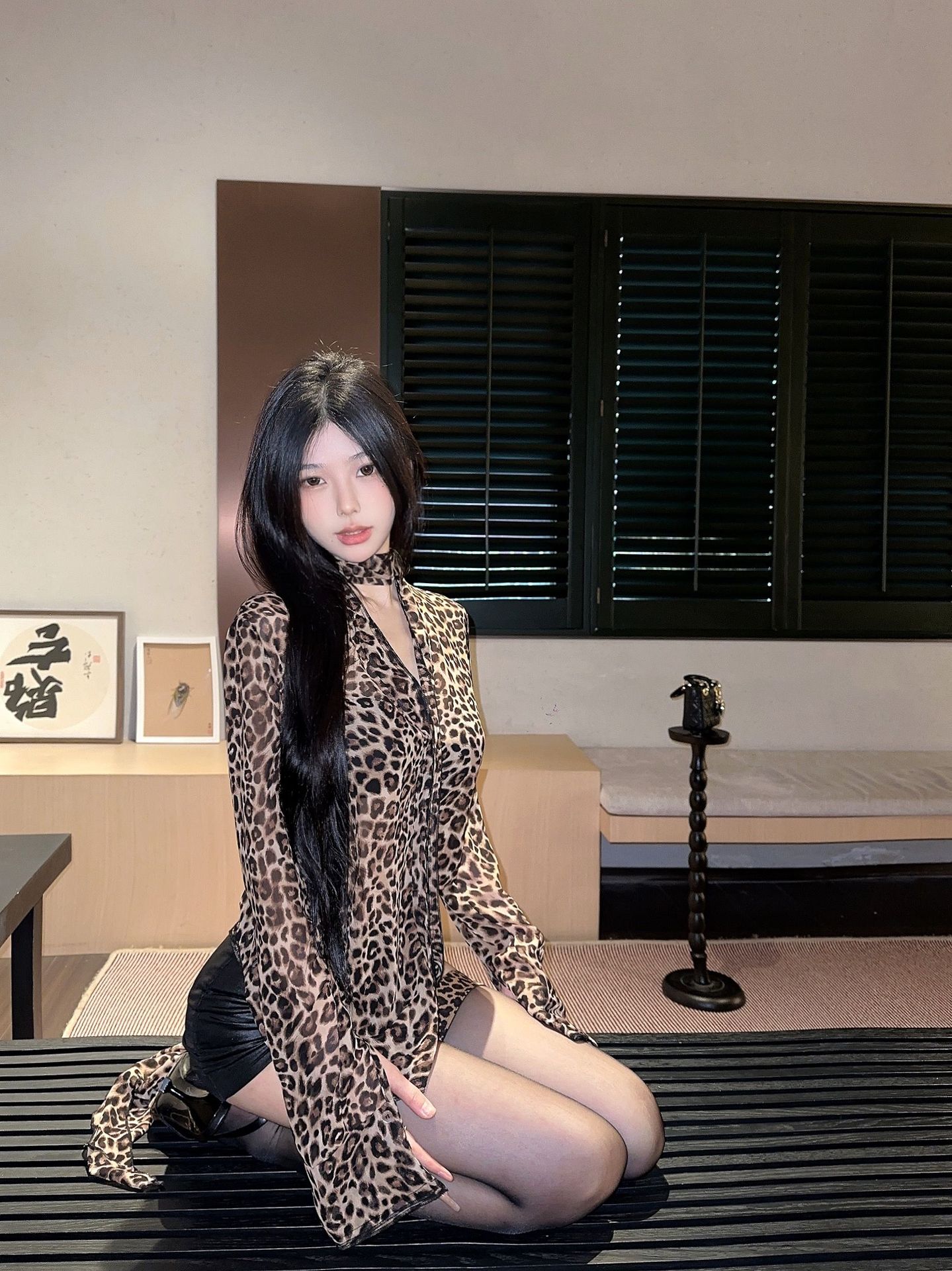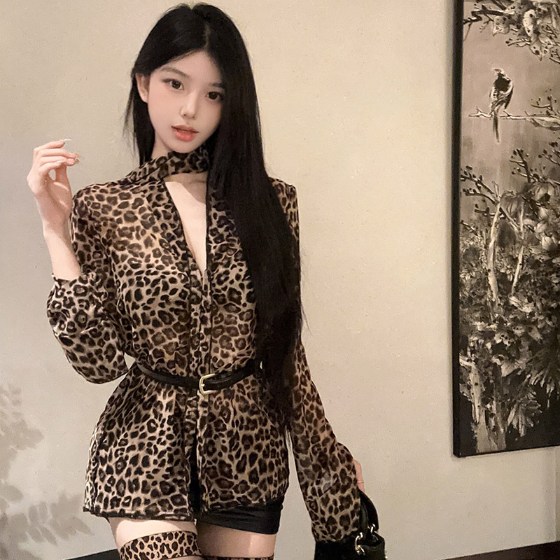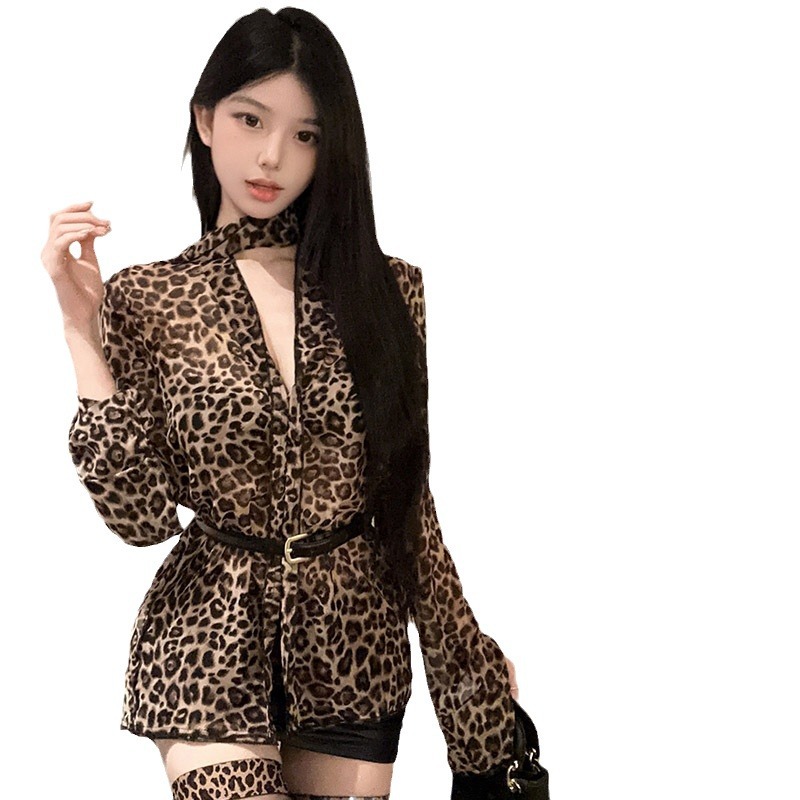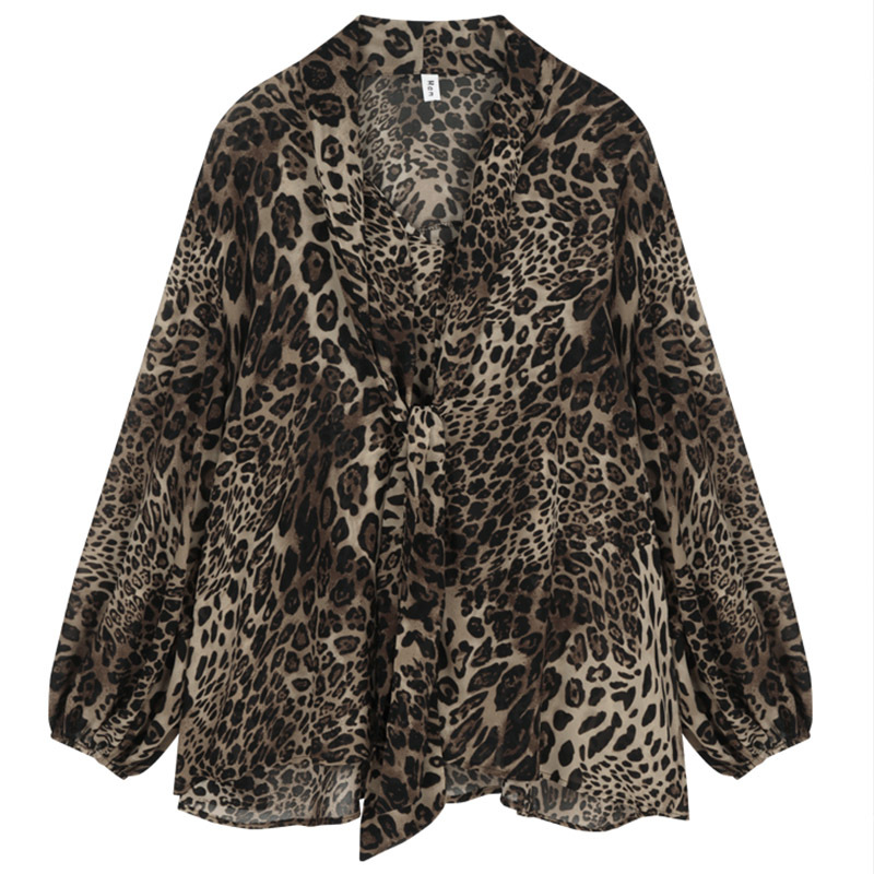 Трансграничный американский леопардовый V-образный вырез с длинным рукавом шифоновая рубашка женская летняя/солнцезащитный крем рубашка