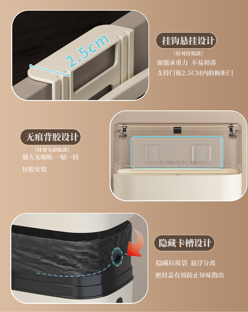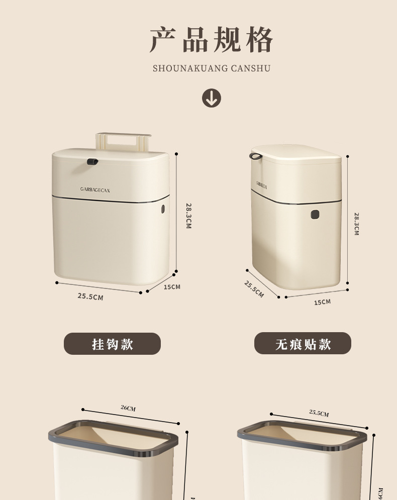 Мусорный контейнер-деньги двойного назначения; Мусорный бак-крючок; Мусорный контейнер-без следов наклейки; Большой мусорный бак без крышки; Мусорный бак без крышки; Некрытая маленькая мусорная корзина