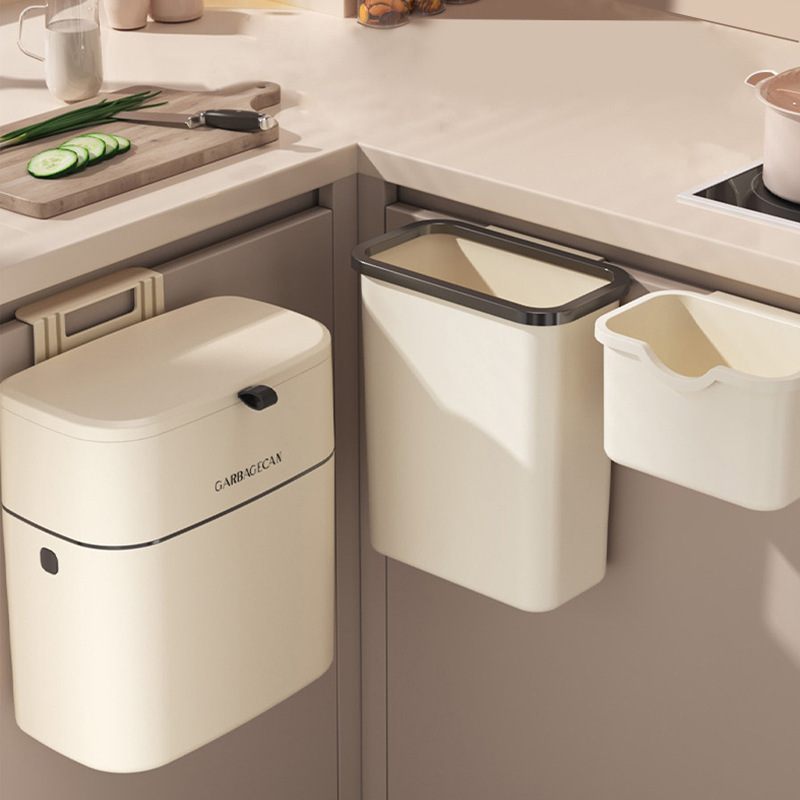 Кухонный подвесной мусорный бак дома крем белый без следов наклейки шкаф корзина для мусора с крышкой домашней настенной сеткой красный ins