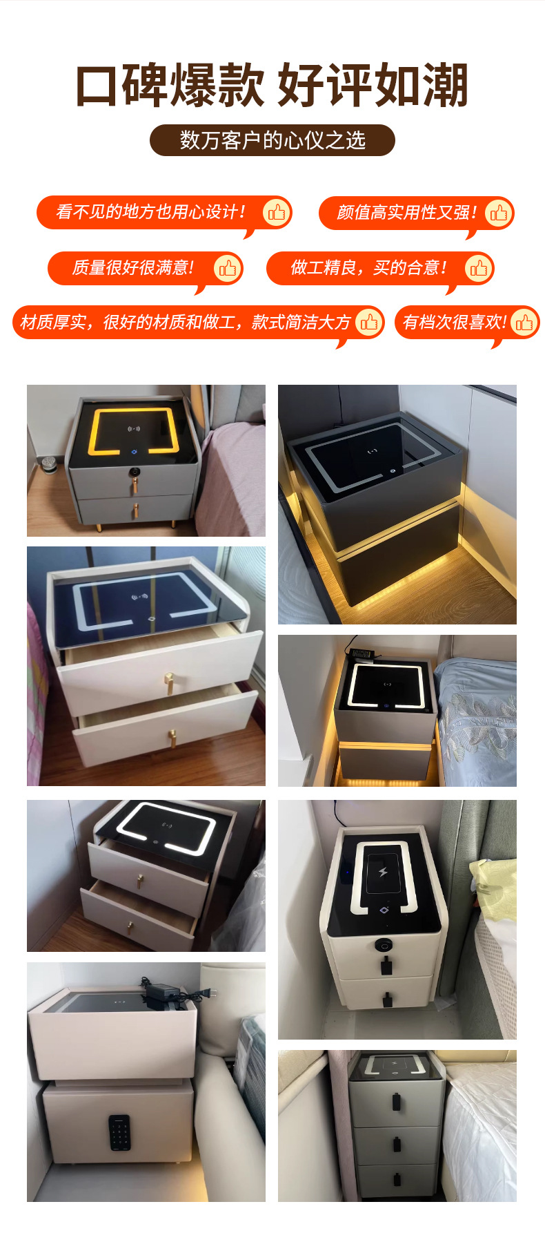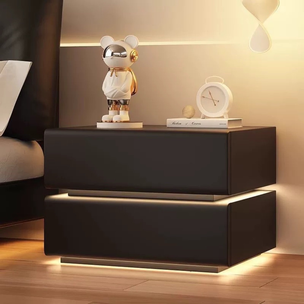 Умная подвесная прикроватная тумбочка из цельного дерева, простой современный легкий роскошный шкаф для хранения, многофункциональный шкаф для спальни, готов к доставке