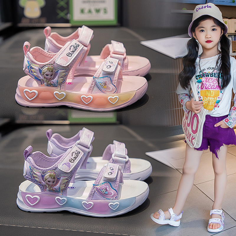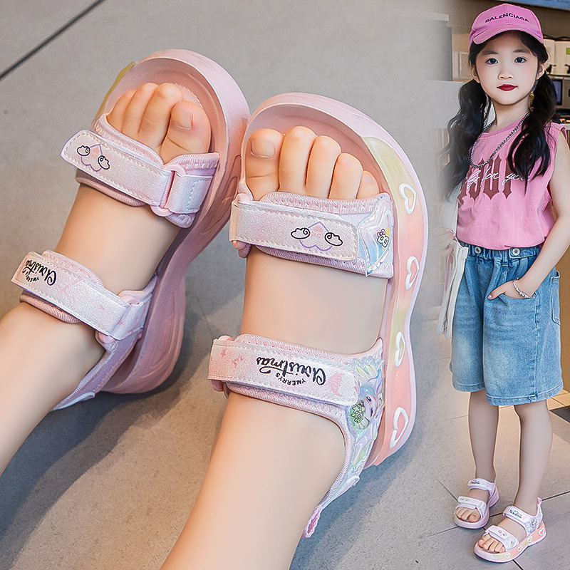 Сандалии для девочек на мягкой подошве Детская обувь принцессы летом новый сетка красная обувь для пляжных туфель милые нескользящие туфли для девочек повседневные туфли