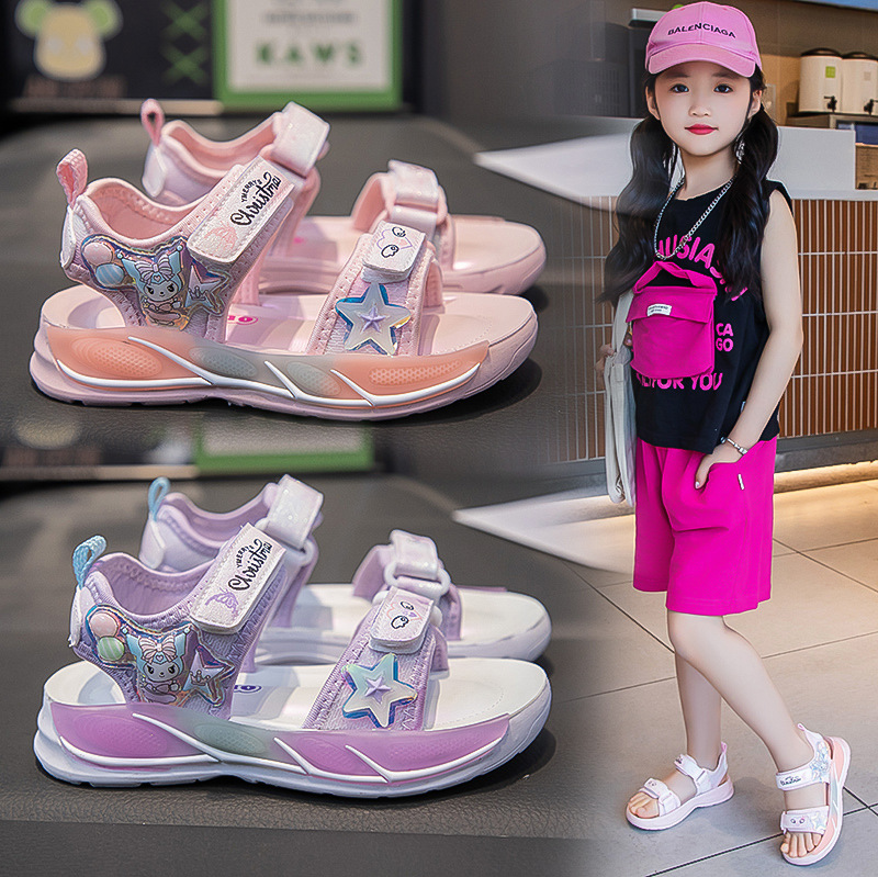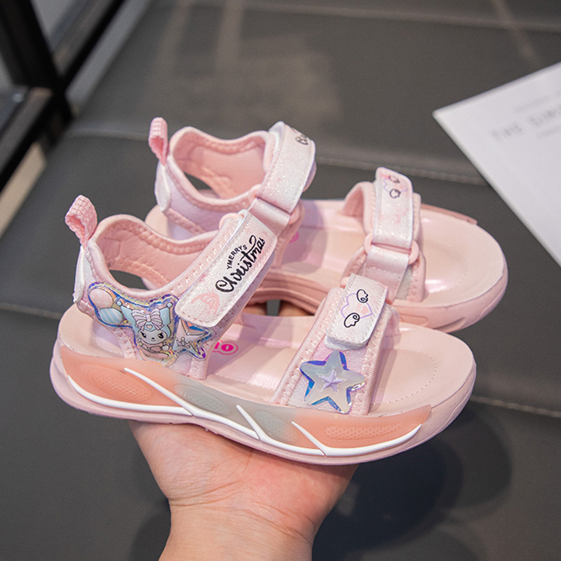 Детские сандалии для девочек Пляжная обувь Летняя новая сетка красная девушка обувь принцессы нескользящая мягкая подошва детские спортивные сандалии