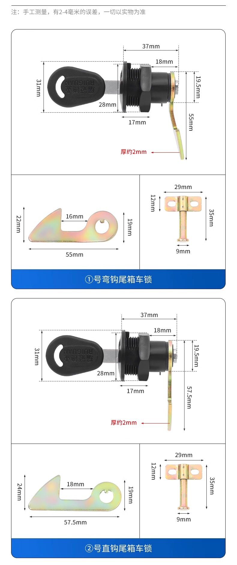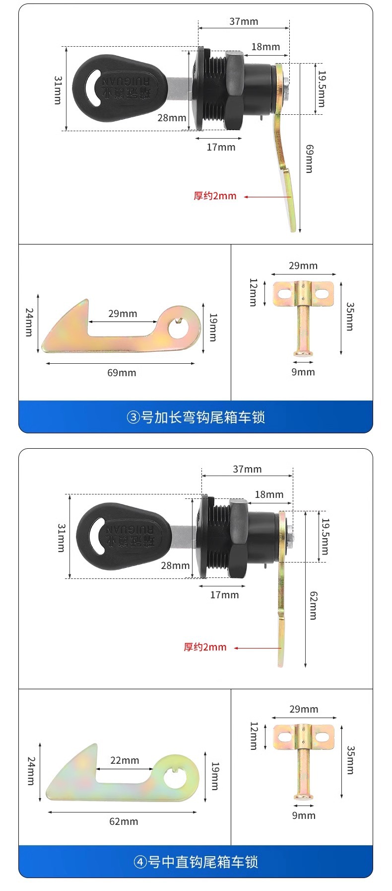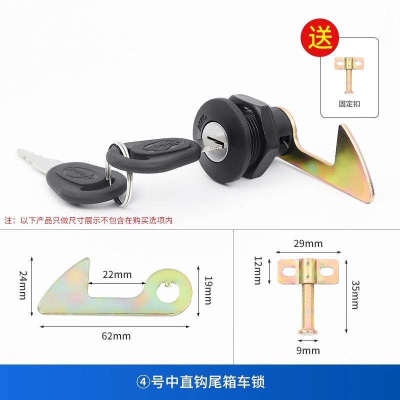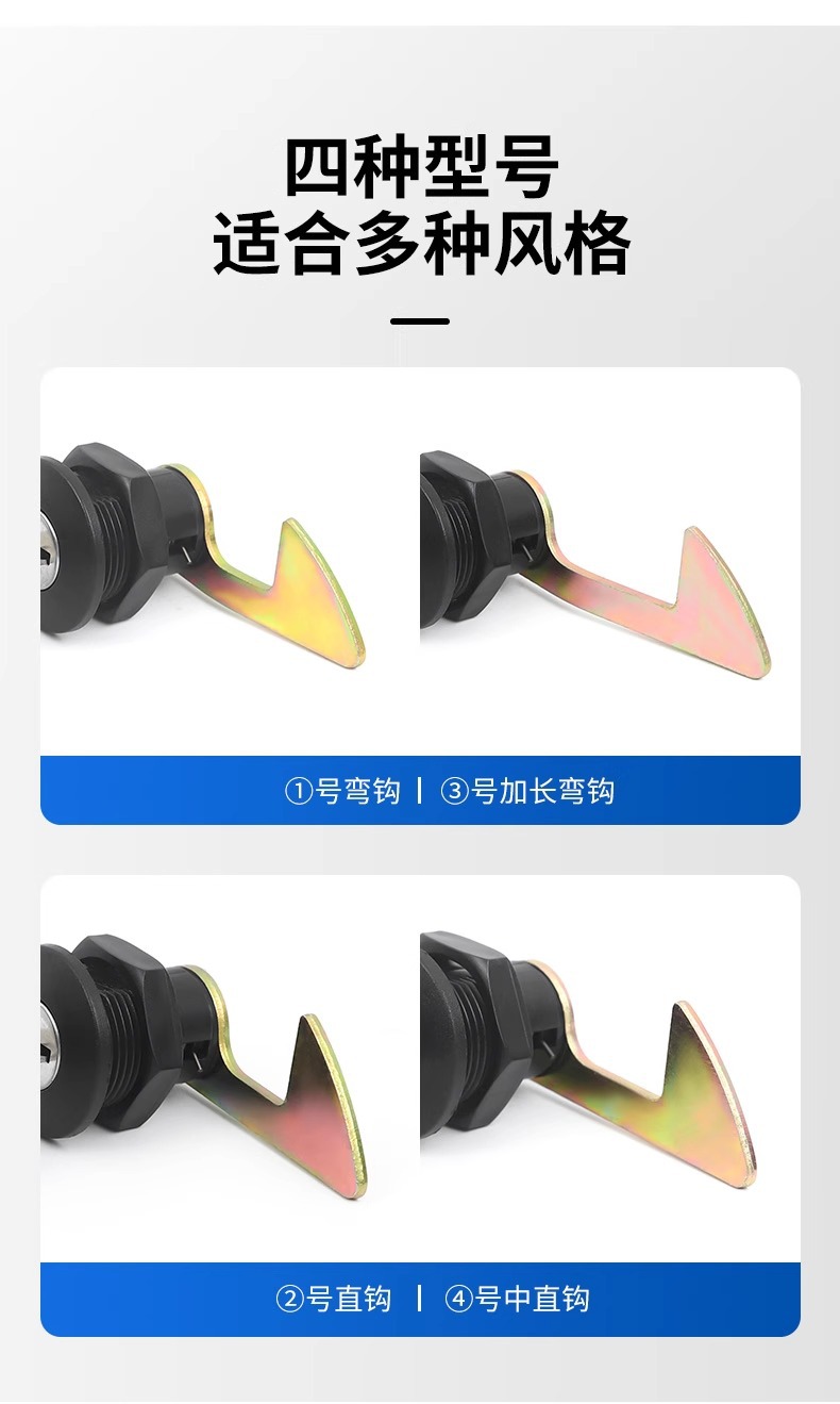№ 1 крючок хвост замок; № 2 прямой крюк хвост замок; № 3 удлиненные крючки; № 4 прямой крюк хвост замок для доставки фиксирующего пряжки; Один замок с четырьмя крючками (не зная размера, вы можете выбрать это); 1 прижимная пластина