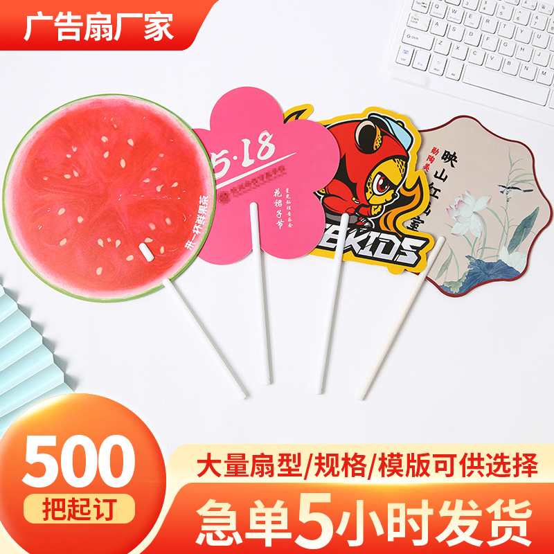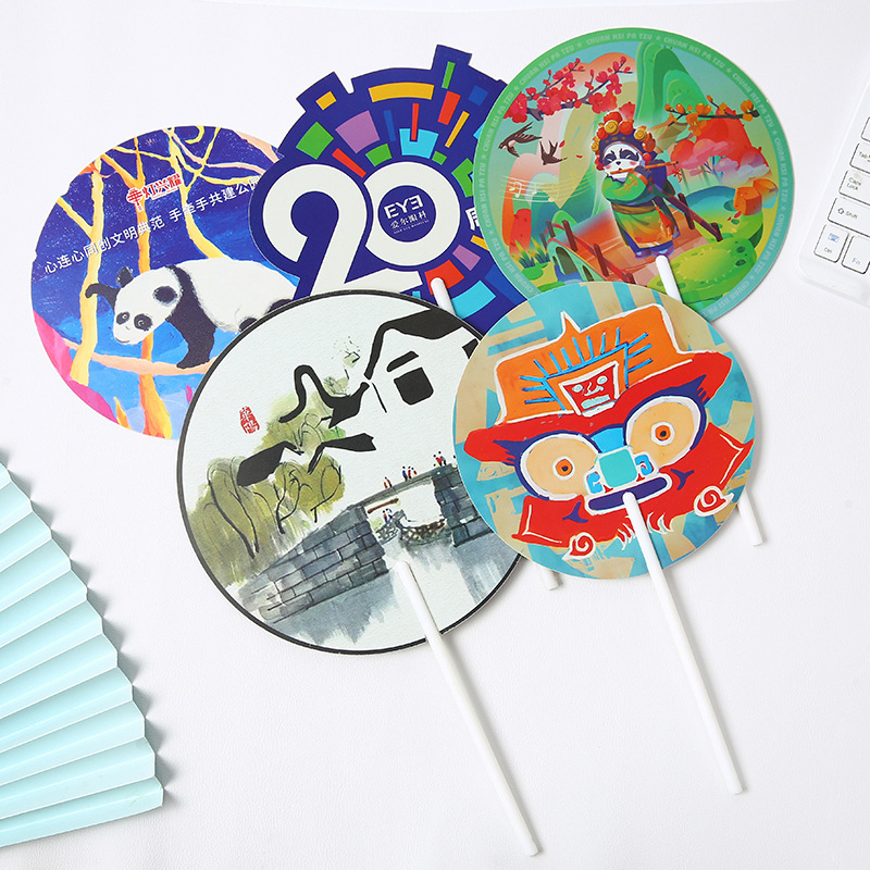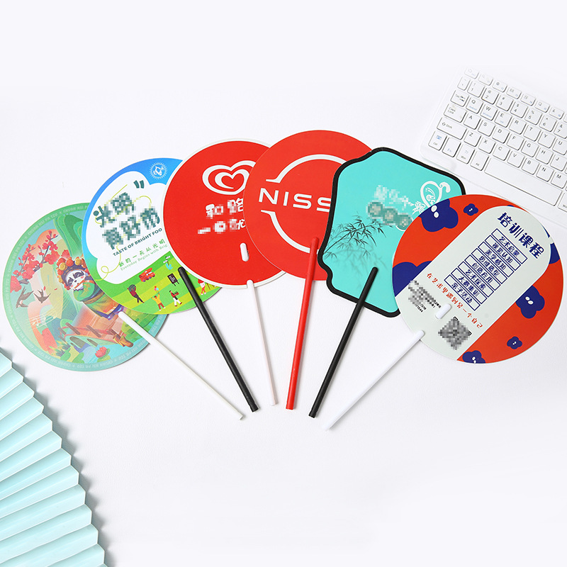 Производитель pp пластиковый рекламный вентилятор пользовательского логотипа корпоративного рекламного мультфильма маленький вентилятор двухсторонней печати