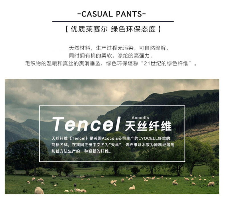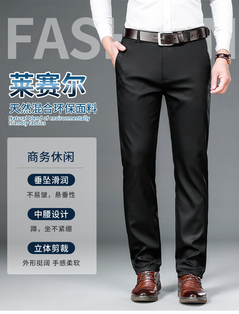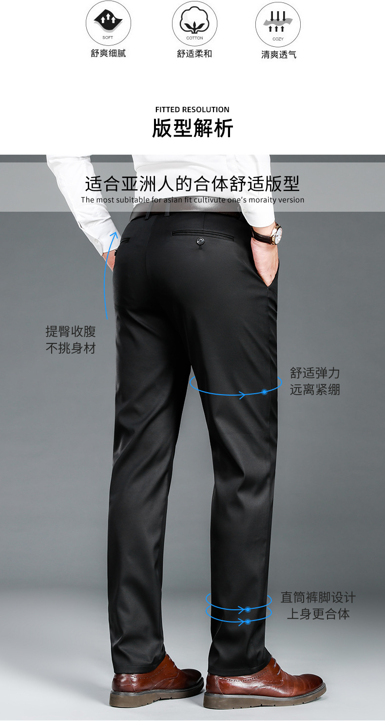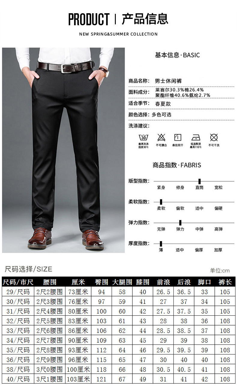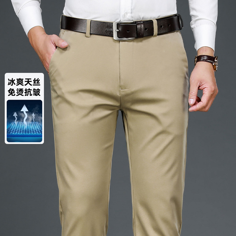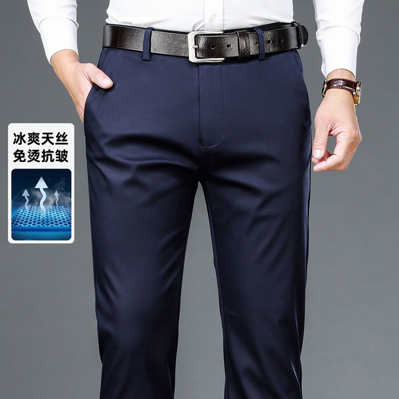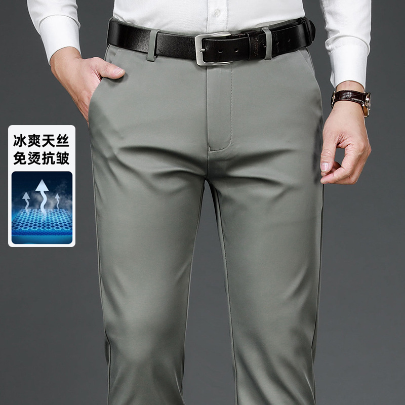 [Tensi Leisel] Весна и лето тонкие эластичные штаны без горячей одежды Мужские прямые брюки, подлинные брюки, повседневные брюки