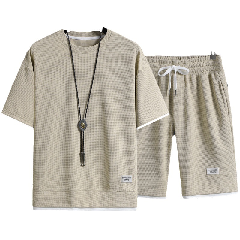 Новые вафли летние мужские повседневные спортивные наборы мужские свободные красивые мужские футболки шорты с короткими рукавами