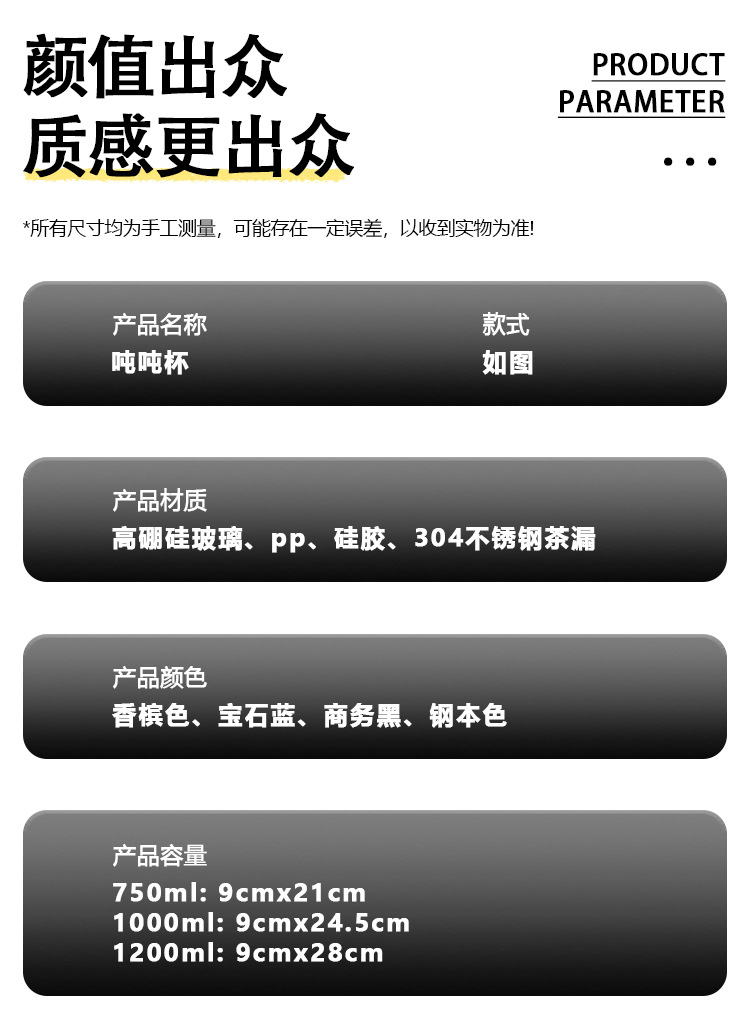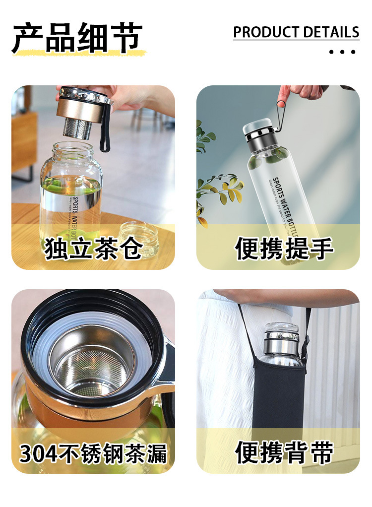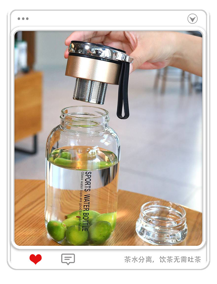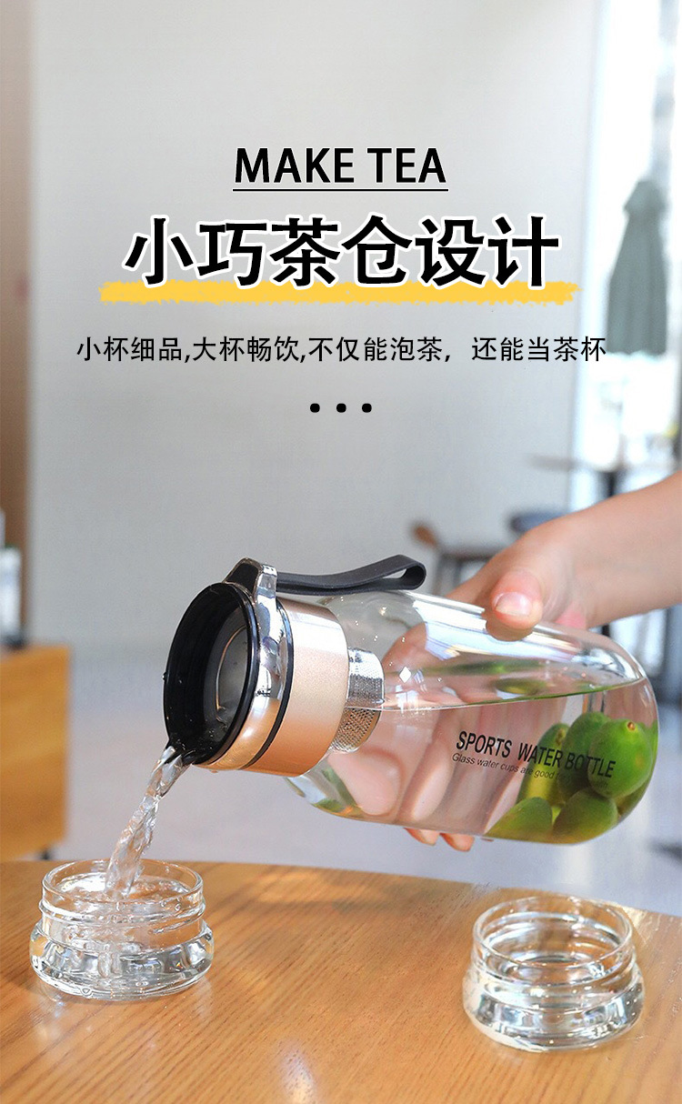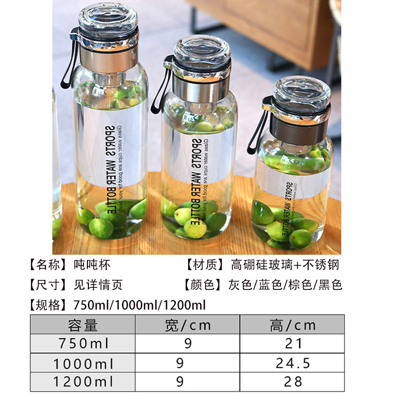 Стекло с высоким содержанием боросиликса тонна стакан для воды спорт фитнес-стакан для воды горшок для бочки 1200 мл большой емкости чай для разделения чашки