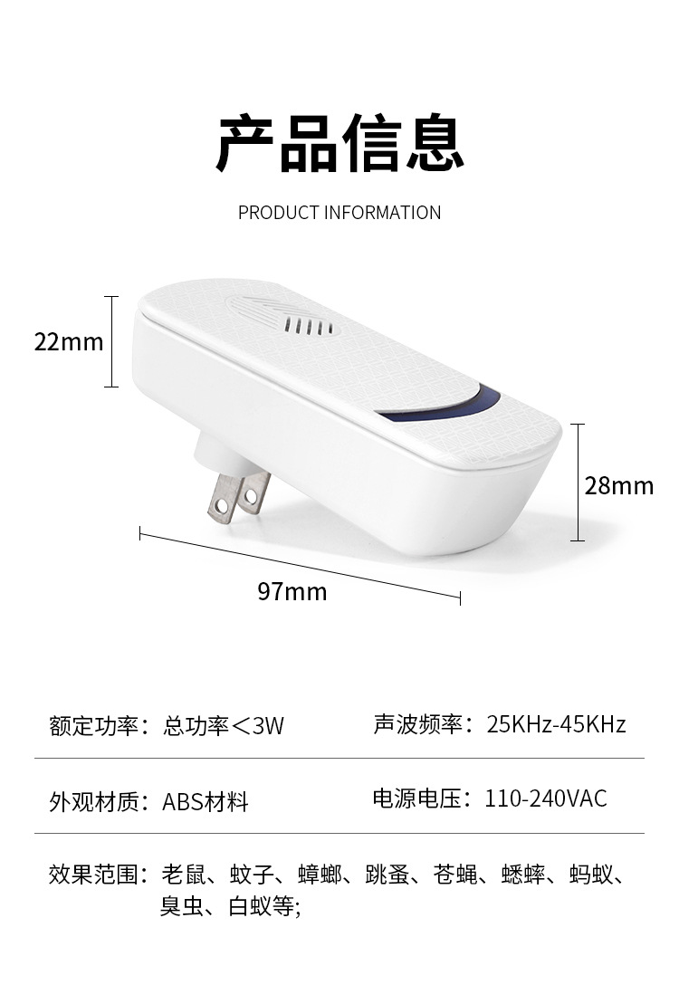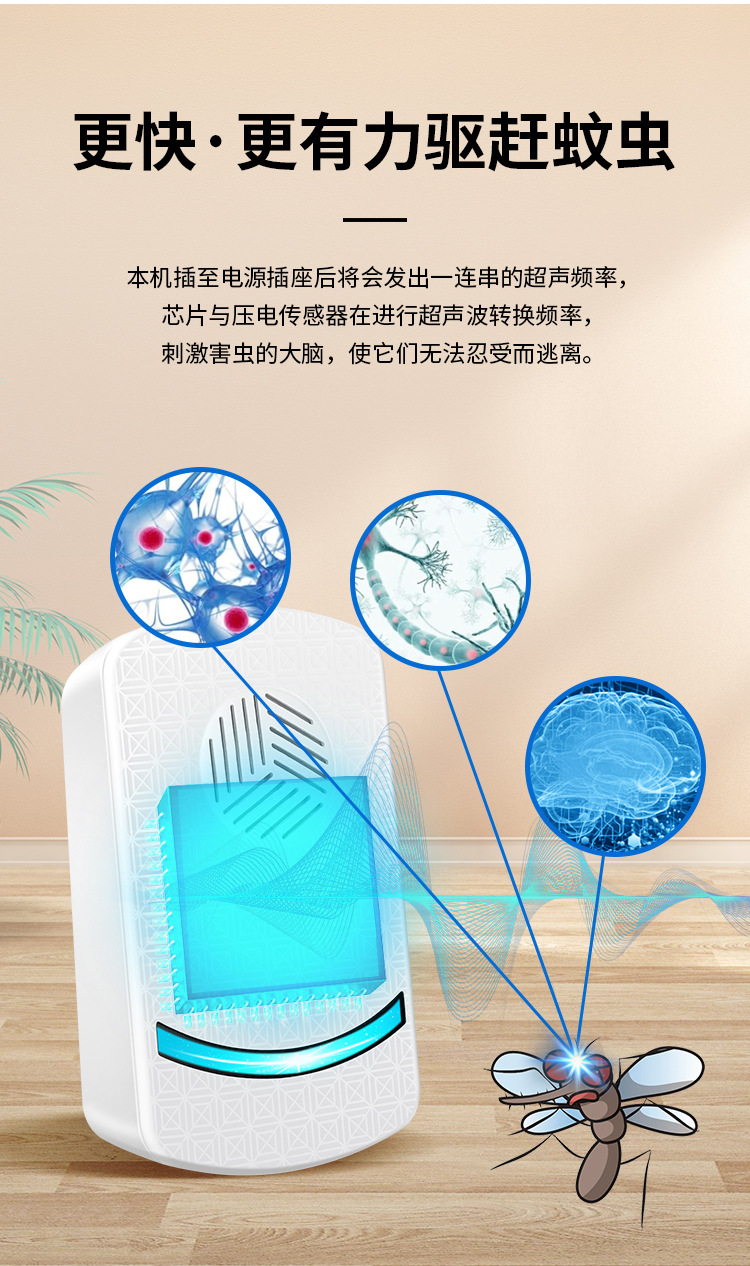 2024 Новый репеллент от комаров Ультразвуковой репеллент от комаров Электронный репеллент от насекомых Домашний репеллент от комаров репеллент от тараканов