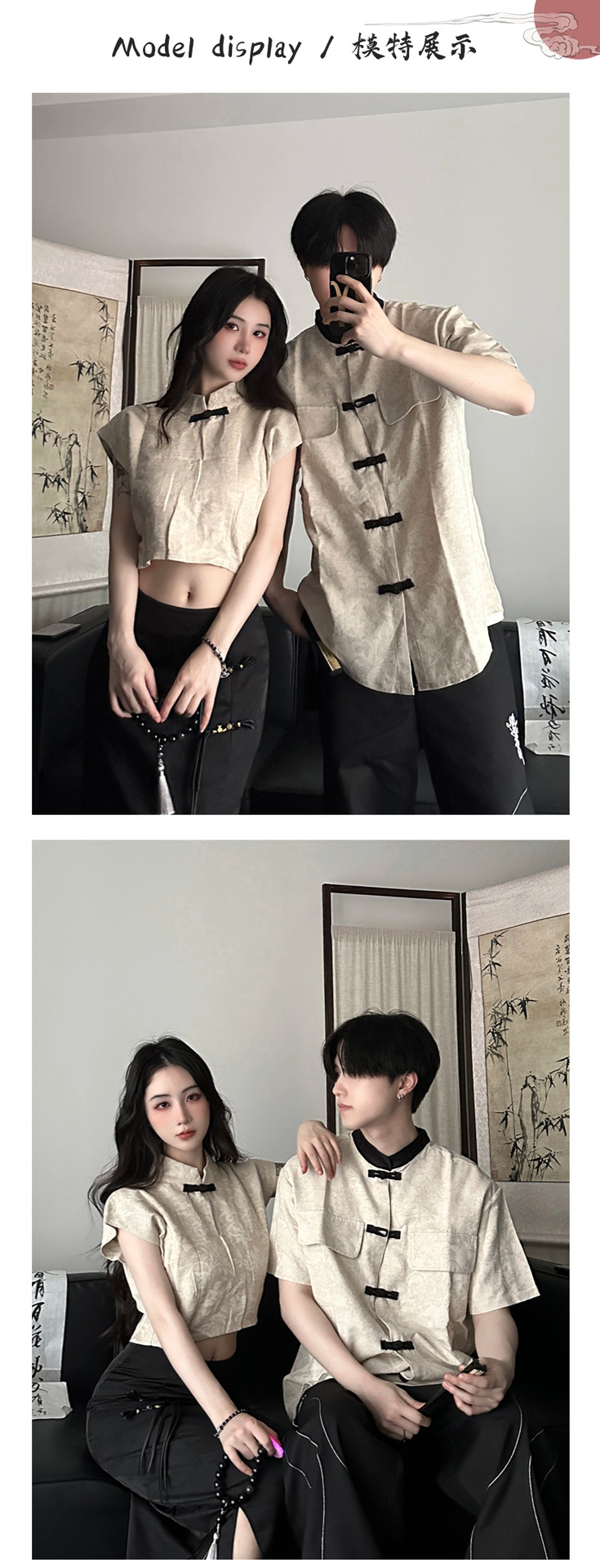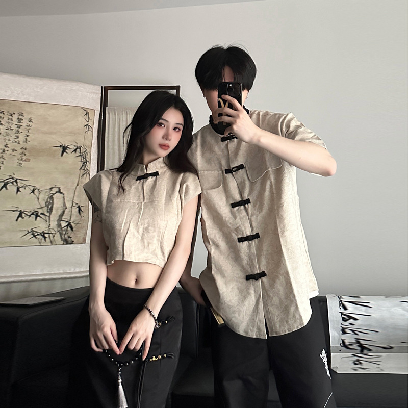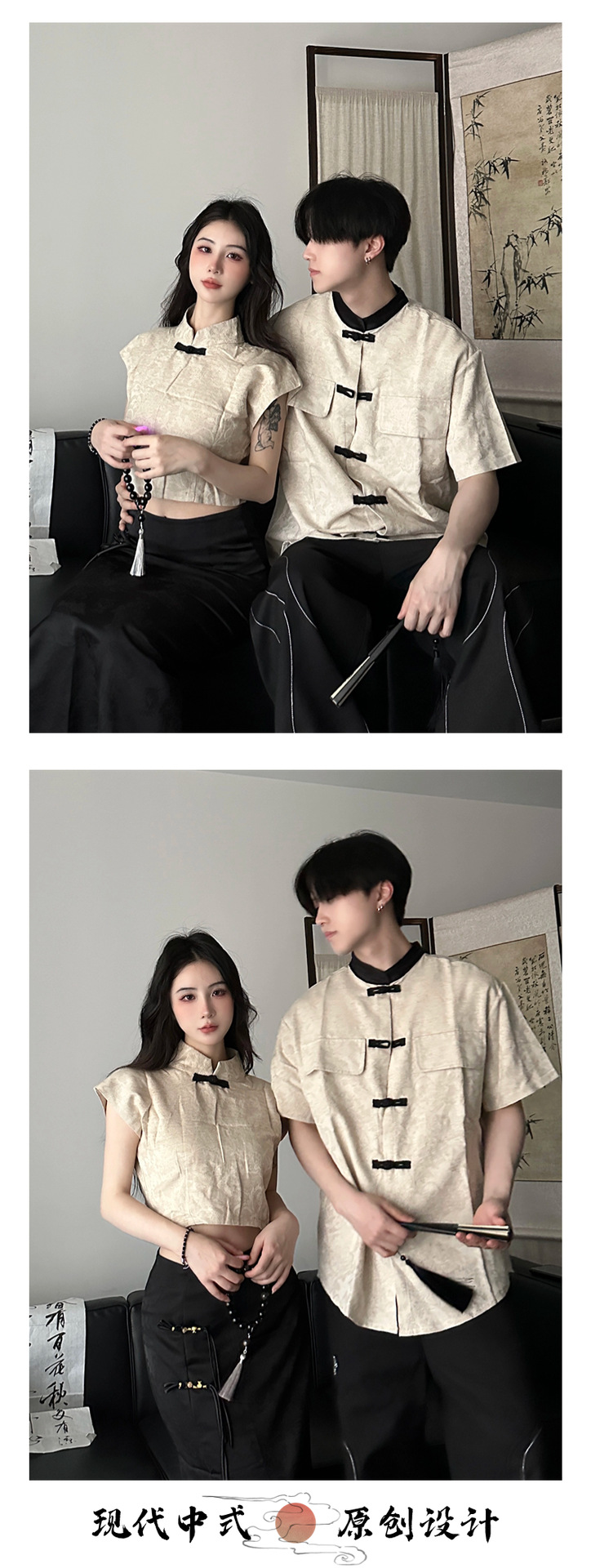 Новые китайские мужчины и женщины в китайском стиле с воротником в стиле жаккардовая рубашка