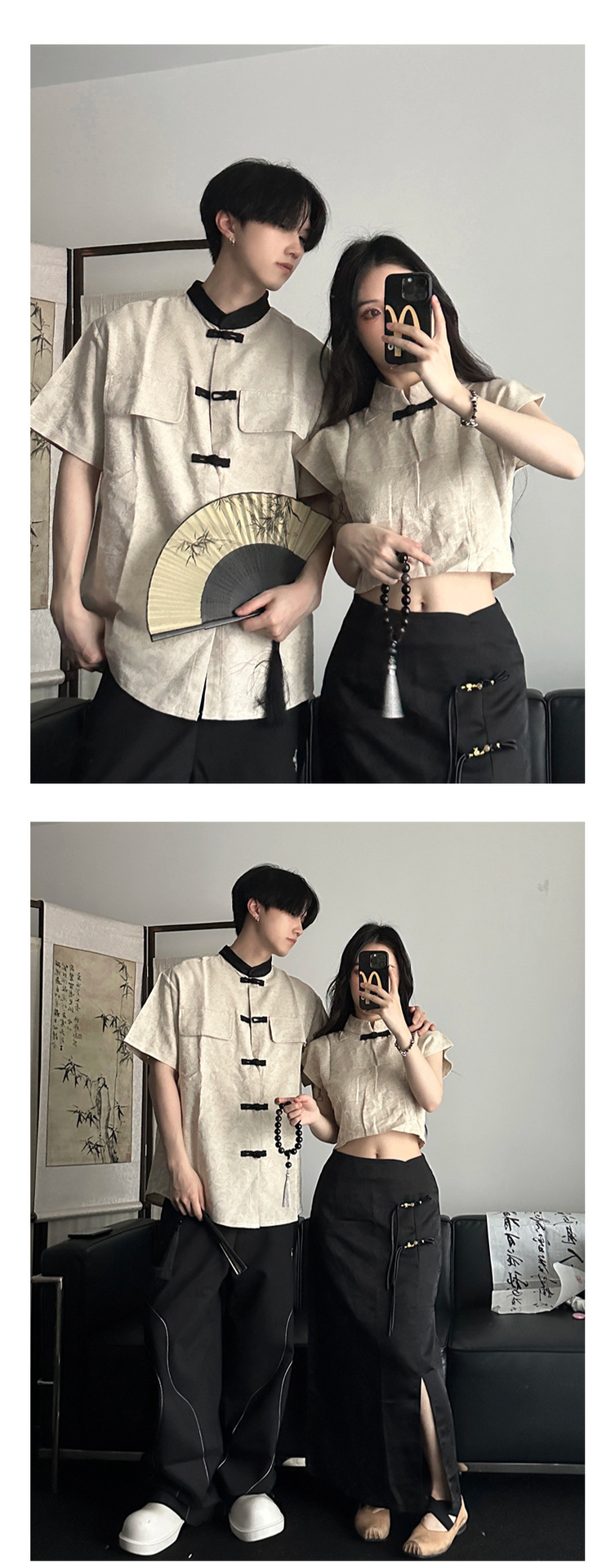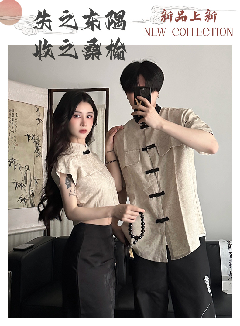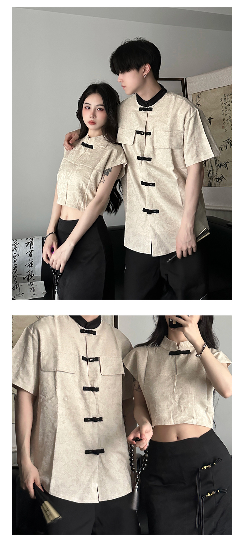 Новые китайские мужчины и женщины в китайском стиле с воротником в стиле жаккардовая рубашка