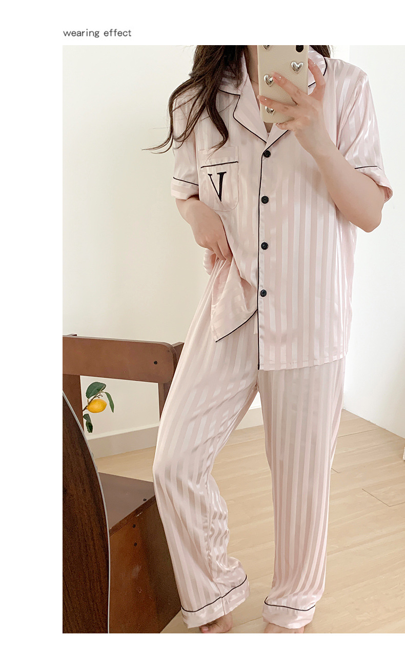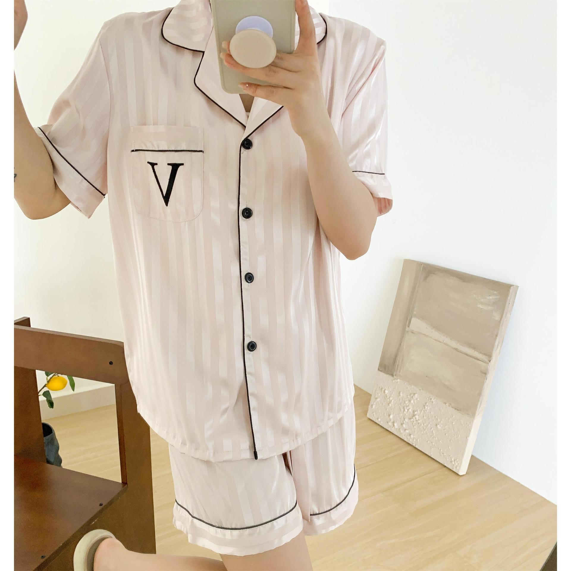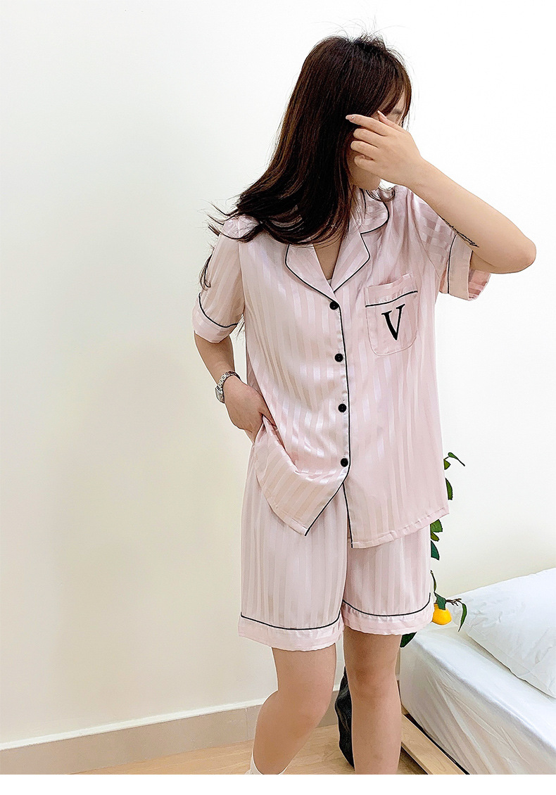 Звездный же стиль, блестящий шелк, лед и снежный шелк, крутой, с короткими рукавами, темный узор, полосатая домашняя одежда, пижамы для женщин, новый летний комплект из трех предметов