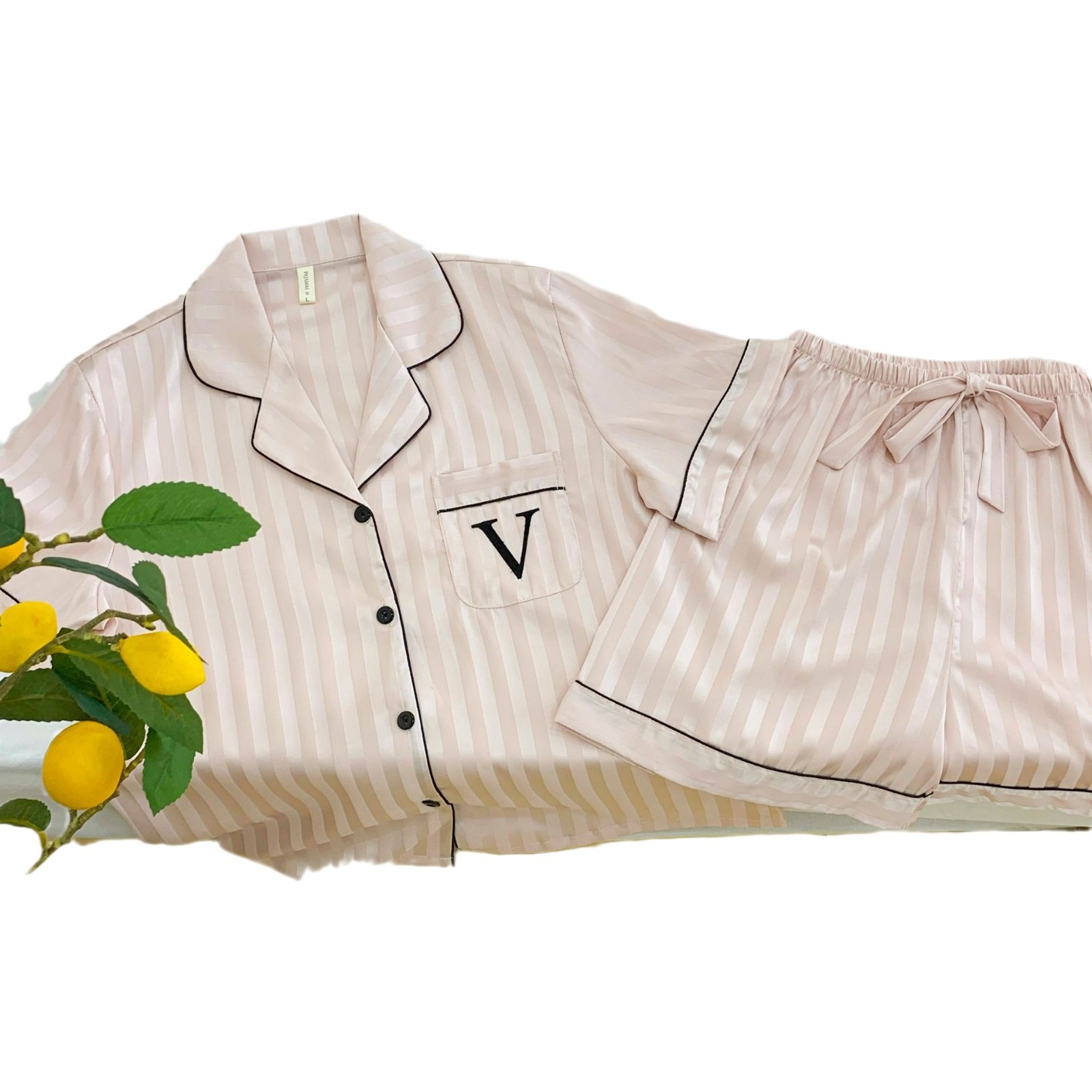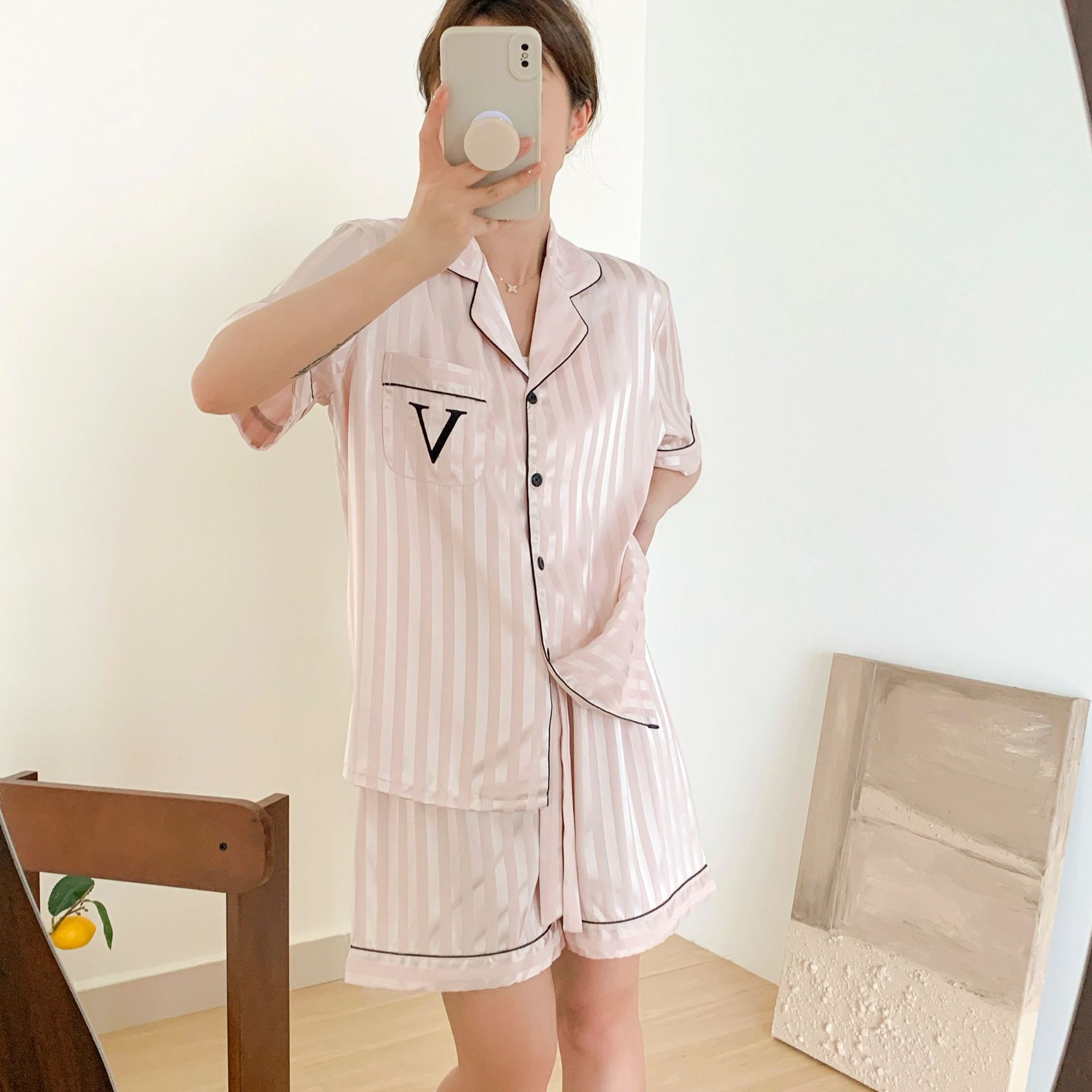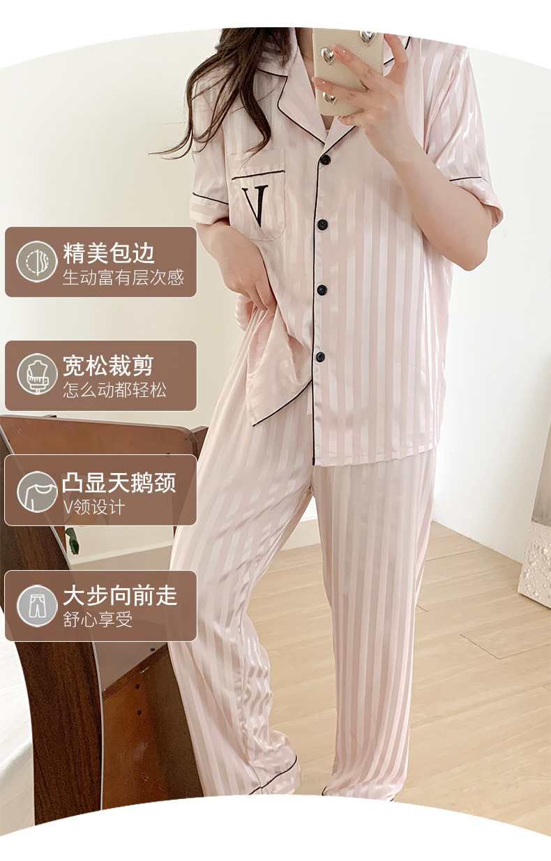 Звездный же стиль, блестящий шелк, лед и снежный шелк, крутой, с короткими рукавами, темный узор, полосатая домашняя одежда, пижамы для женщин, новый летний комплект из трех предметов