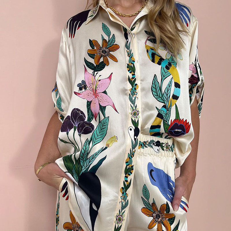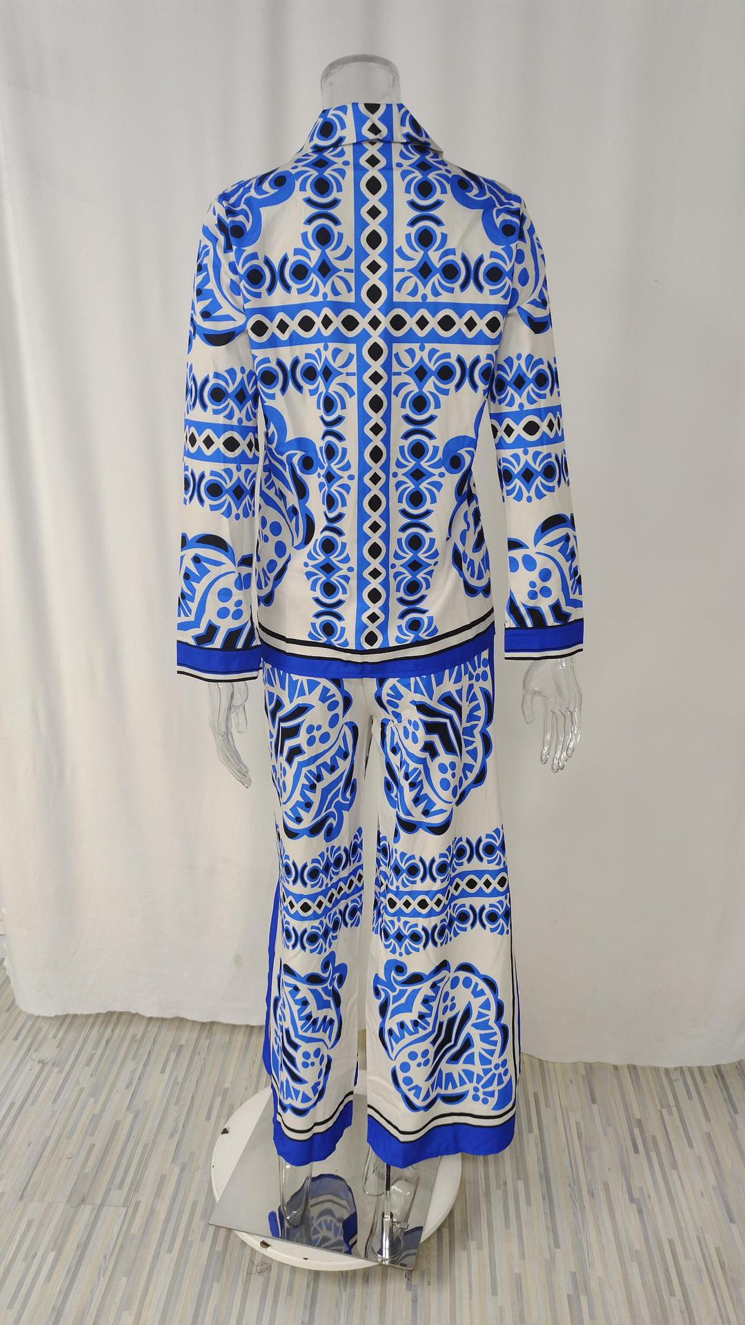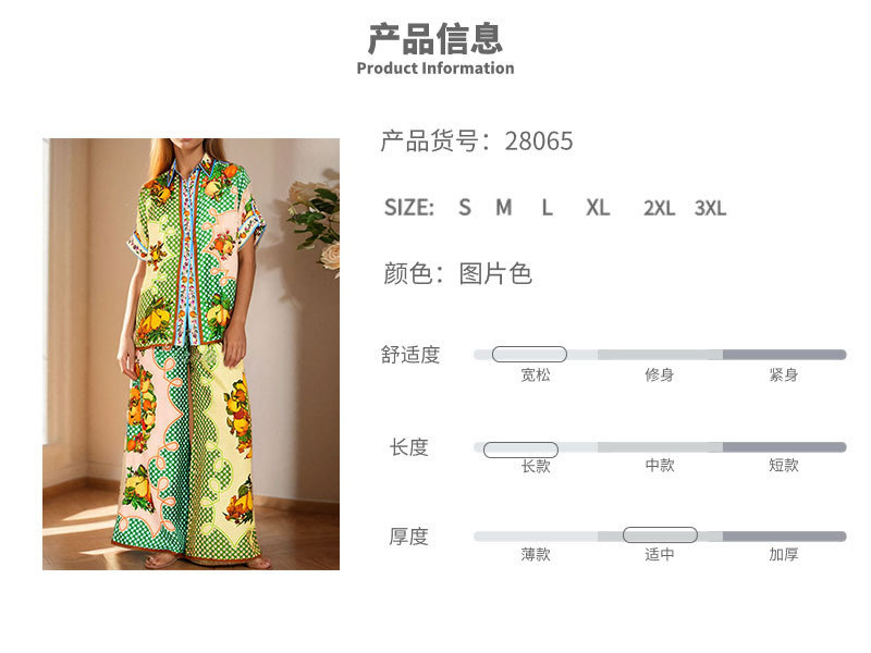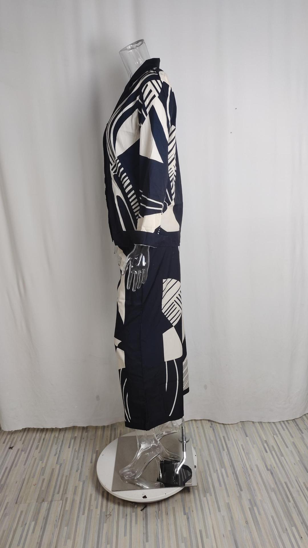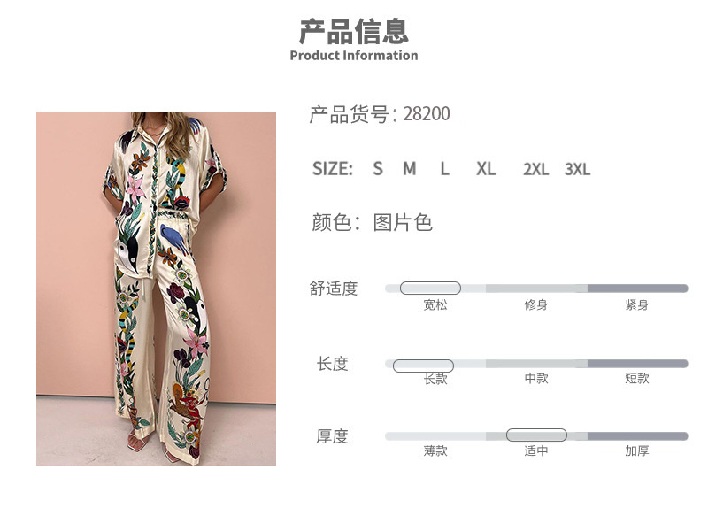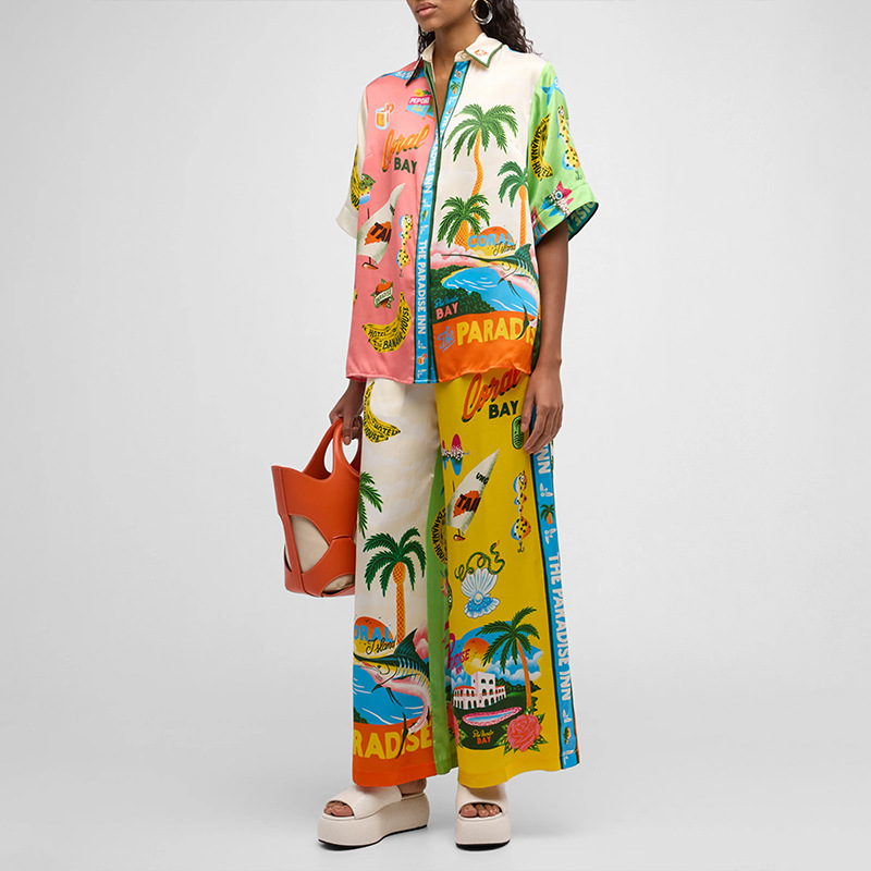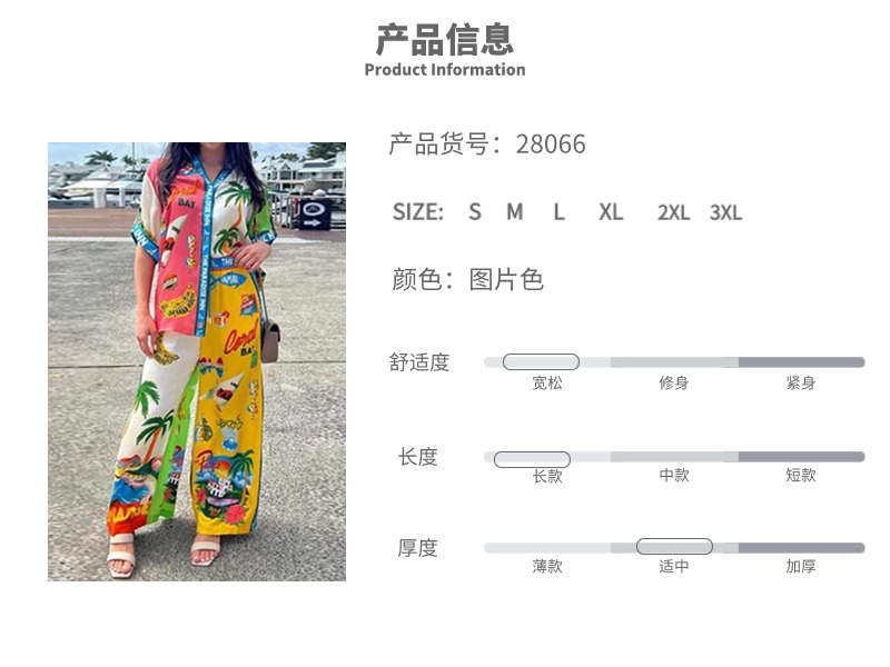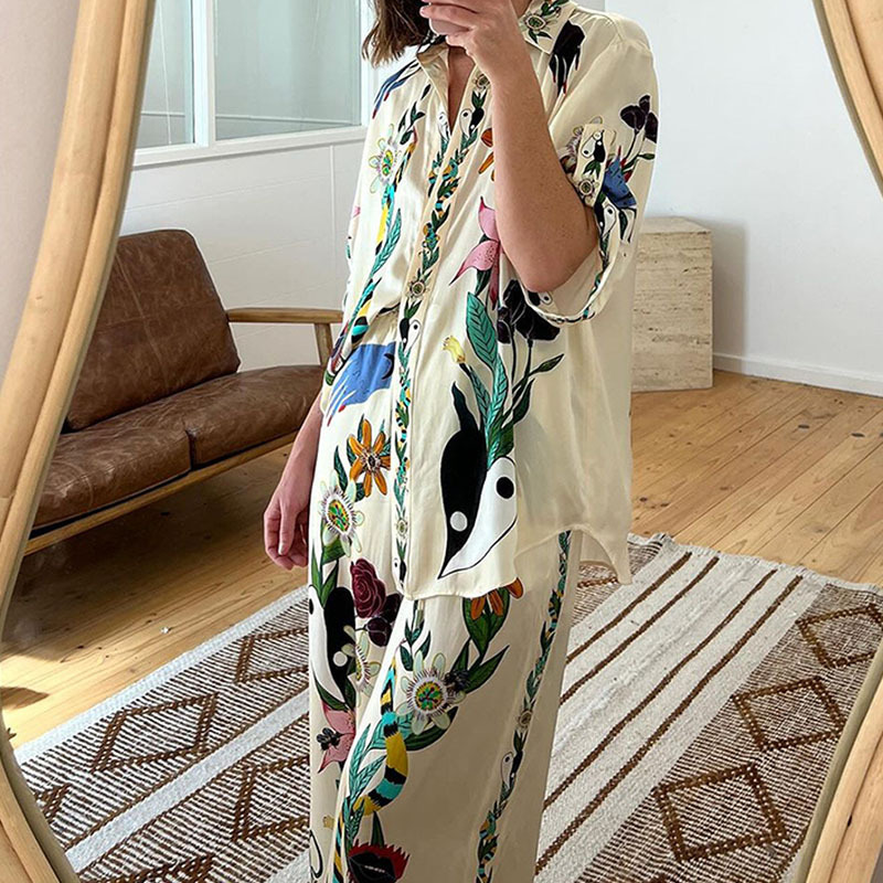 2025 Независимая станция Европейская и Американская женская одежда печатная цветовая сшитая талия карманы широкие ноги повседневный модный набор женский набор из двух частей