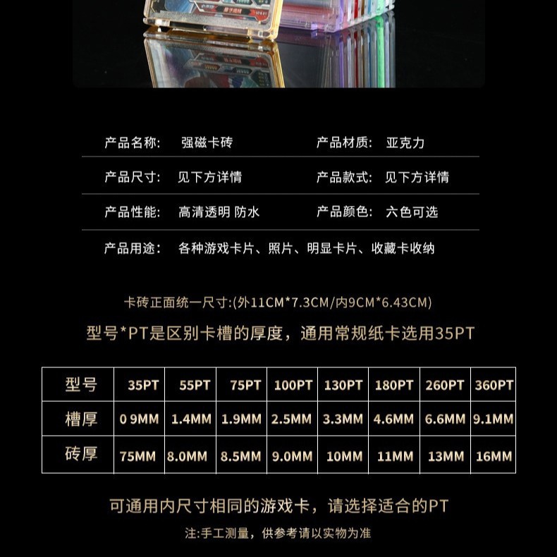 Прозрачные карточные плитки 35PT; Кирпич фиолетовой карты 35PT; Кирпич розовой карты 35PT; Кирпич желтой карты 35PT; Кирпич зеленой карты 35PT; Плитка карты Blu-ray 35PT; Прозрачные карточные плитки 55PT; Прозрачные плитки для карточек 75PT; Прозрачные карточные плитки 100PT; Прозрачные карточные плитки 130PT; Прозрачные карточные плитки 180PT; Прозрачные карточные плитки 260PT; Прозрачные карточные плитки 360PT; Свободная регулировочная подставка; Прозрачная подставка для штатива; деревянный каркас; U-образная рама; 3inch (внутренний размер 58,5*89,5 мм) с отверстиями; 3inch (внутренний размер 58,5*89,5 мм) с отверстием + веревка; 3.5inch (64*89 мм) с отверстиями; 3.5inch (64*89 мм) с отверстием + веревка; 35PT прозрачная карточная плитка с тонким сечением; Карточный кирпич с прямым углом 35PT