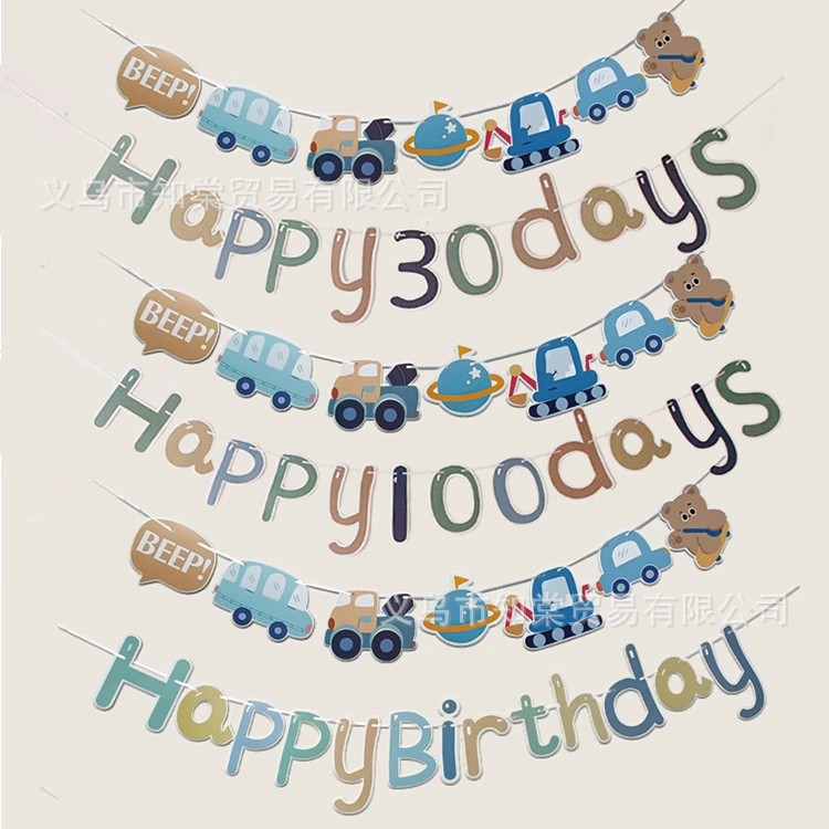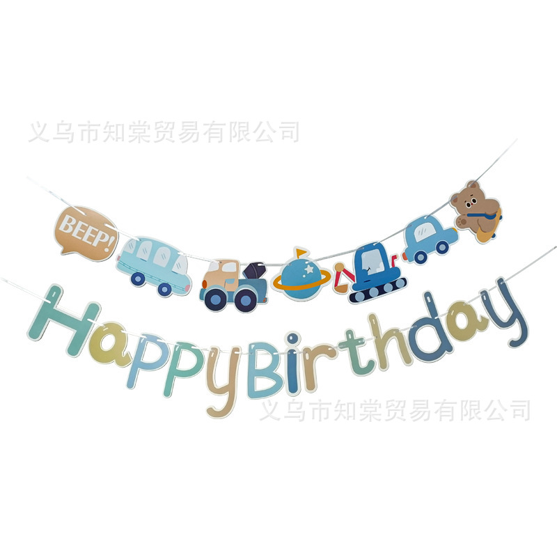 Детский день рождения мультфильм автомобиль тянуть флаг инженерный автомобиль автомобиль happybirthday день рождения буква тянуть баннер