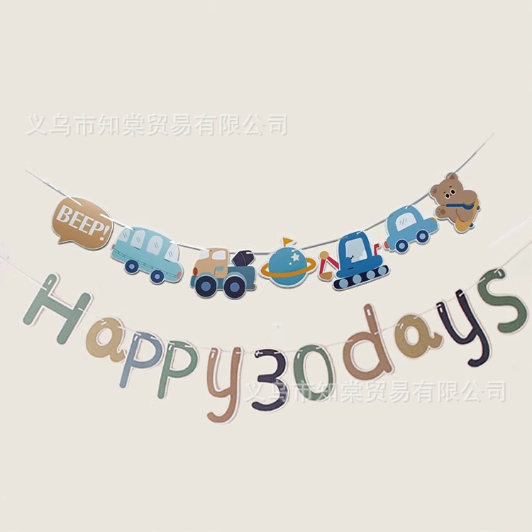 Макарон автомобиль день рождения тянет флаг; 30 дней полнолуния машина тянет флаг; 100 дней автомобиль тянет флаг