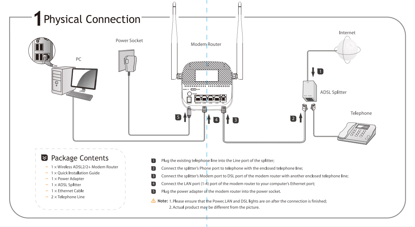 ADSL по эксплуатации Телефонный кабель Сепаратор питания кабель сети