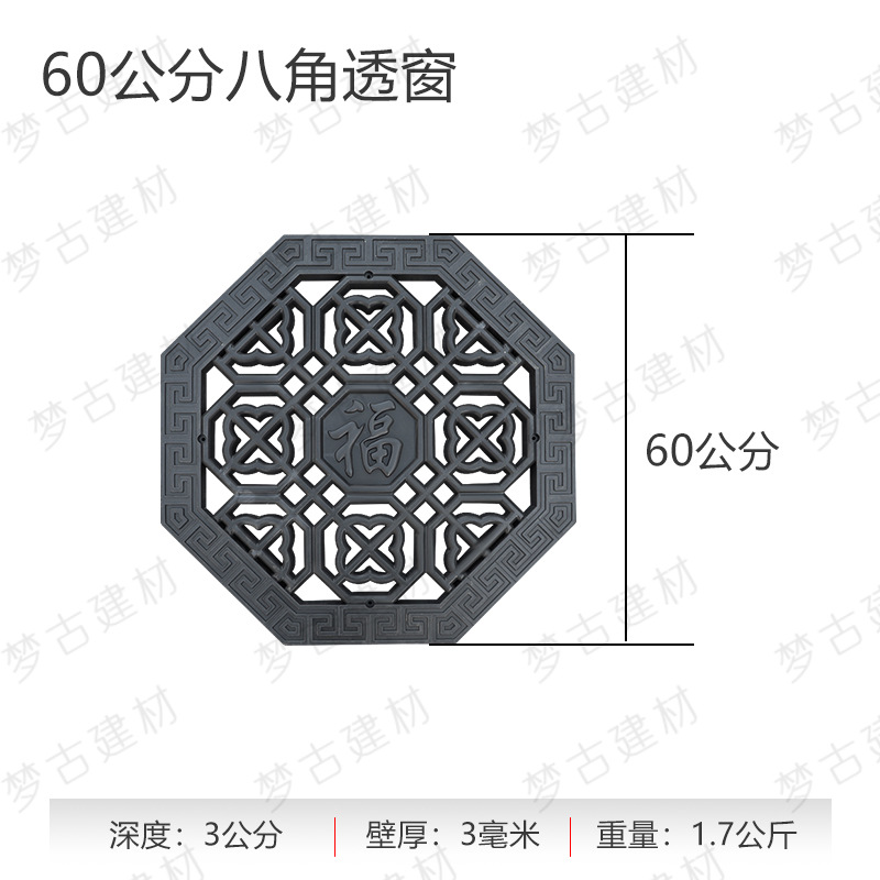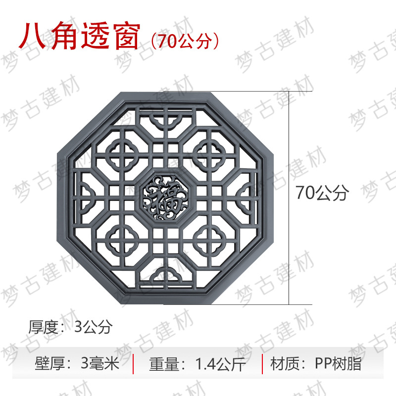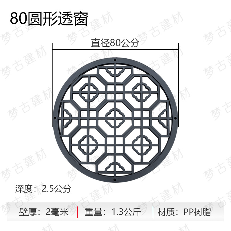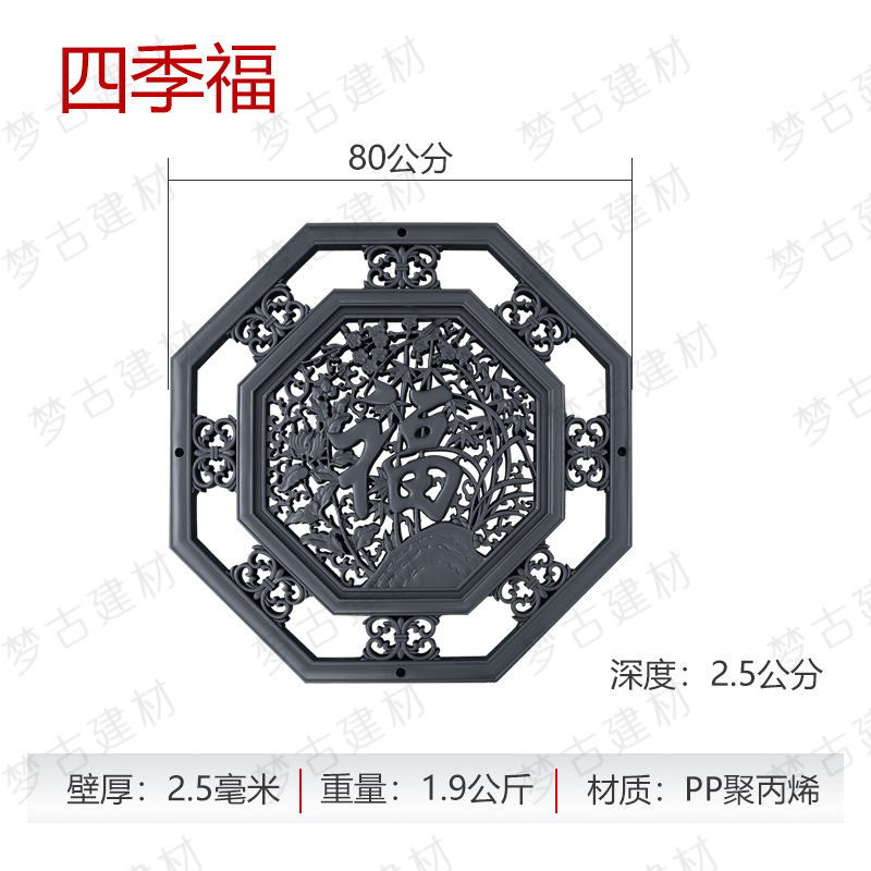 Мини круглое сквозное окно; Мини-окно из цветов сливы; Мини-веерообразное окно; Мини-трещина льда через окно; Мини-квадратное окно; Мини-восьмиугольное окно; Восьмиугольное окно ( 60cm ); Квадратное цветочное окно ( 60cm ); Круглое окно ( 60cm ); Восьмиугольное окно благословения ( 60cm ); Круглый лотос через окно (диаметр 60cm ); Восьмиугольное окно ( 70cm ); Круглогодичное благословение ( 80cm ); Восьмиугольное окно ( 80cm ); Большое веерообразное окно ( 105cm ); Круглое сквозное окно (диаметр 80cm ); Квадратное окно ( 80cm )