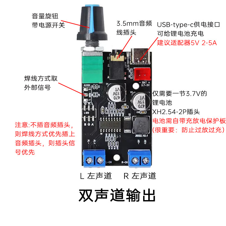 可充电锂电池数字功放板3.7-5V立体双声道2*20W大功率DIY书桌音箱