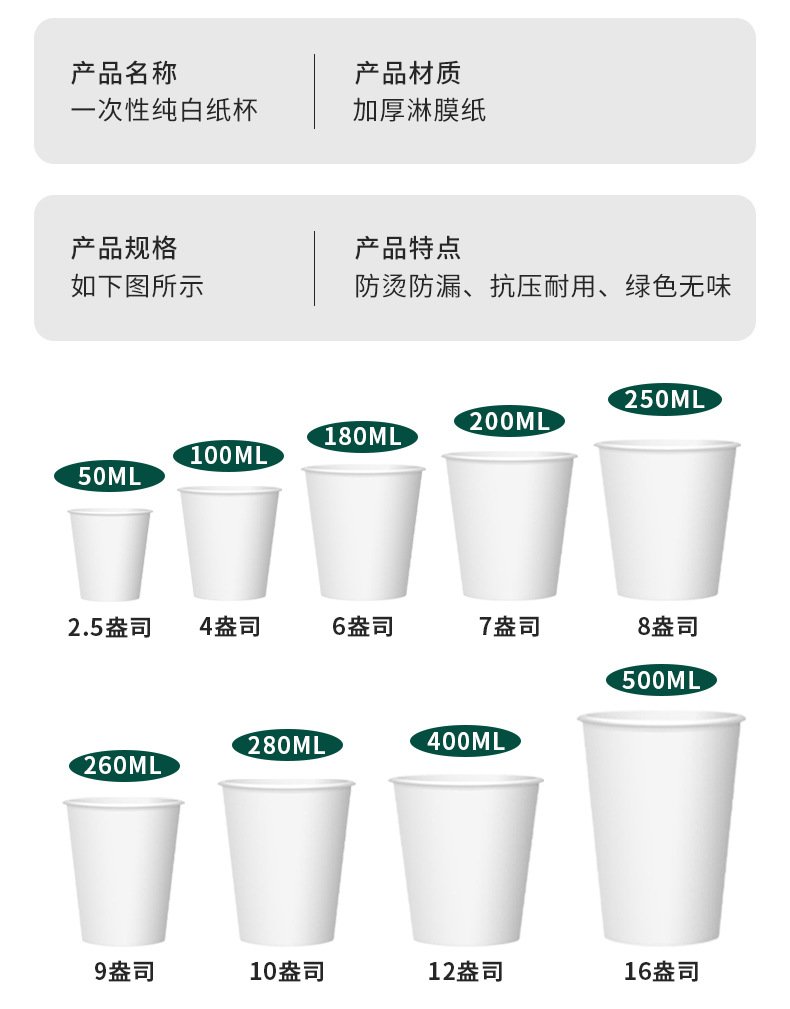 Белый, 2,5 унции, 50 мл; чистый цвет; Белый, 4 унции (100 мл), чистый цвет; Белый, 6 унций, 180 мл; чистый цвет; Белый, 7 унций (200 мл), однотонный цвет; Белый, 8 унций (250 мл), однотонный цвет; Белый, 9 унций, 260 мл; однотонный цвет; Белый, 10 унций (280 мл), однотонный цвет; Белый, 12 унций (400 мл), однотонный цвет; Белый, 16 унций, 500 мл; однотонный цвет