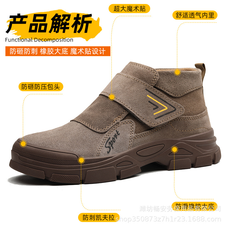 Обувь по страхованию труда Мужская стальная головка, противоударная ударная, ударная, ударная, высокая, кожаная противоугарная, сварочная рабочая обувь, оптовая продажа