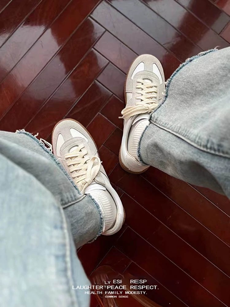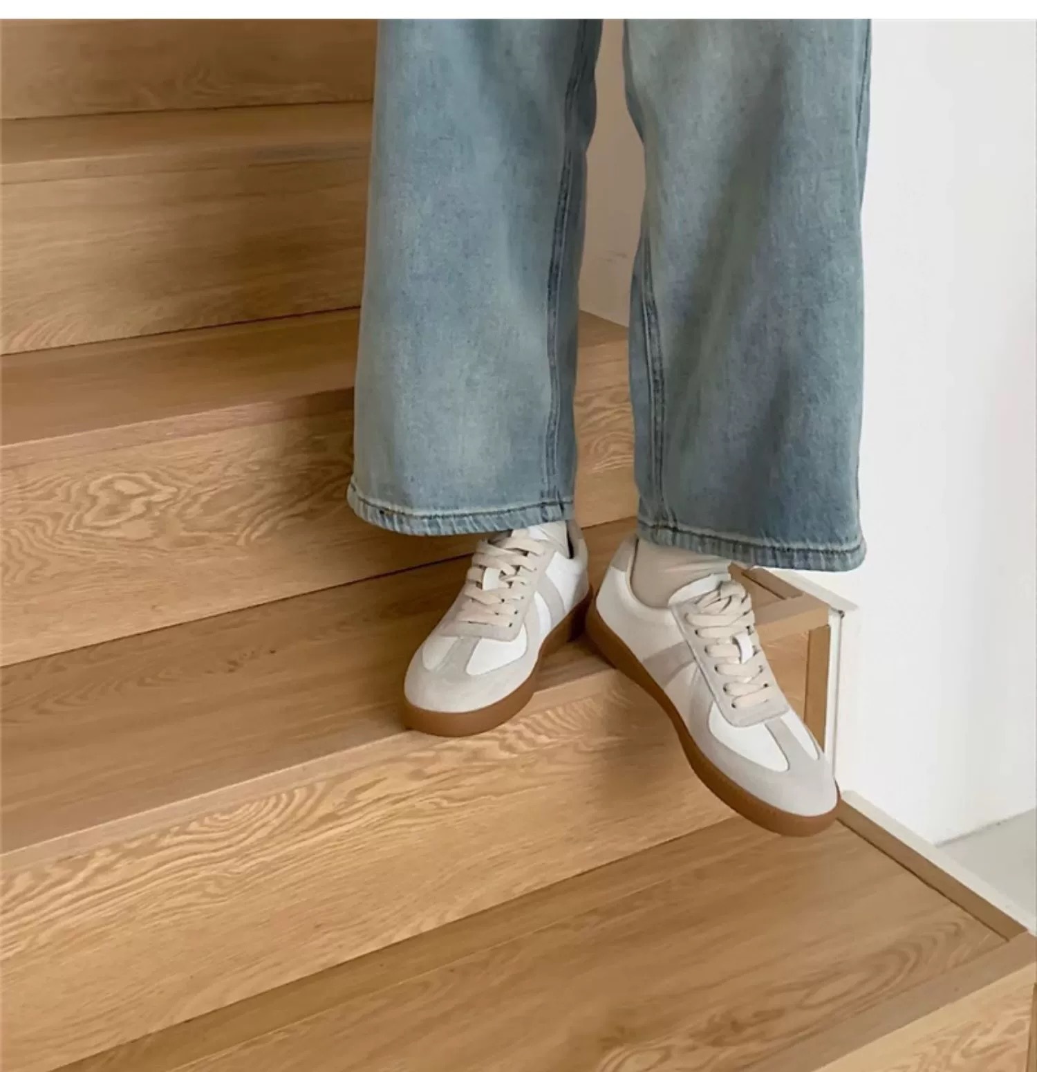 Полностью натуральная кожа в стиле ретро, универсальные моральные тренировочные туфли на плоской подошве в корейском стиле, новинка 2025 года, повседневная спортивная обувь на шнуровке с круглым носком для женщин