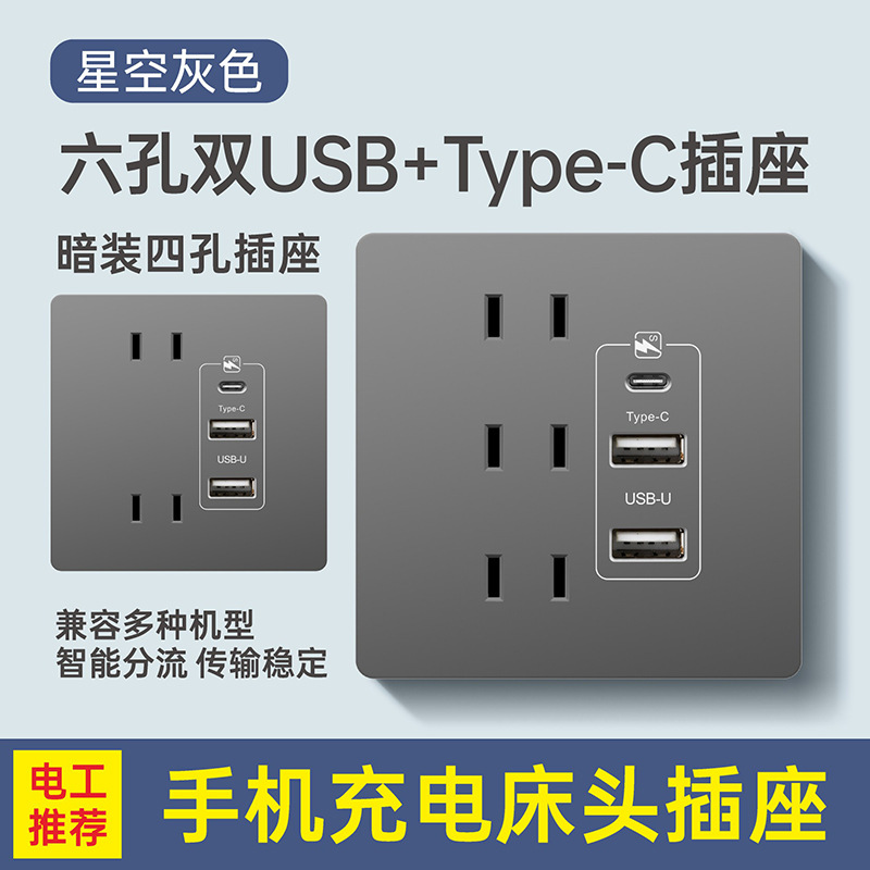Тип 86 розеток панели быстрой зарядки USB многожильные розетки панели светлый и темный двухлунный четырехлунный зарядный дом оптом