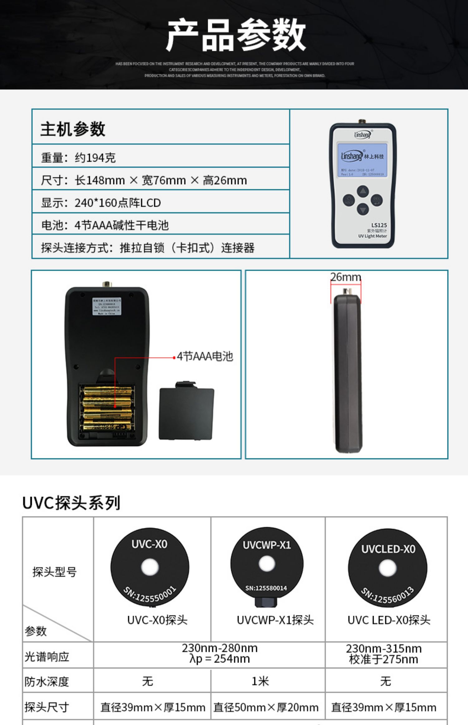 林上LS125紫外线测试仪强度计UV光功率计紫外辐照计uv-a多通道
