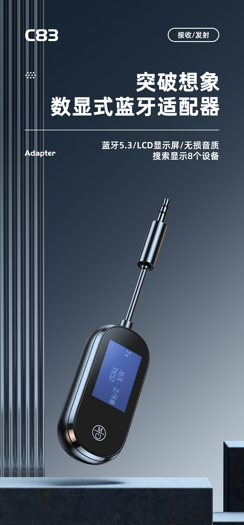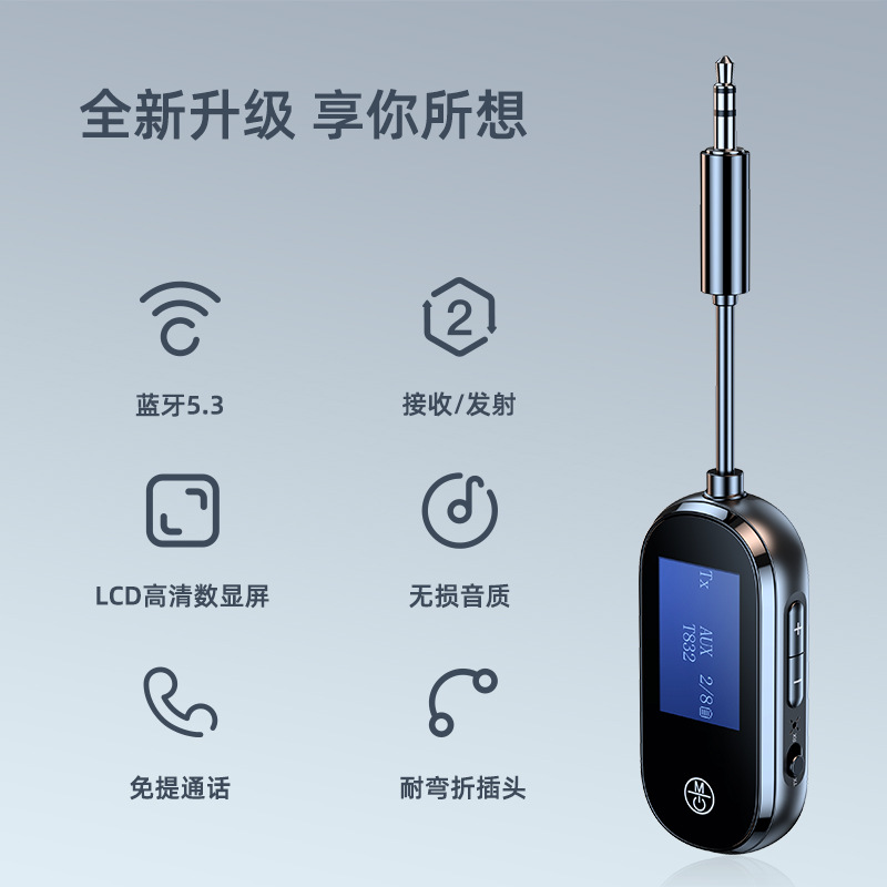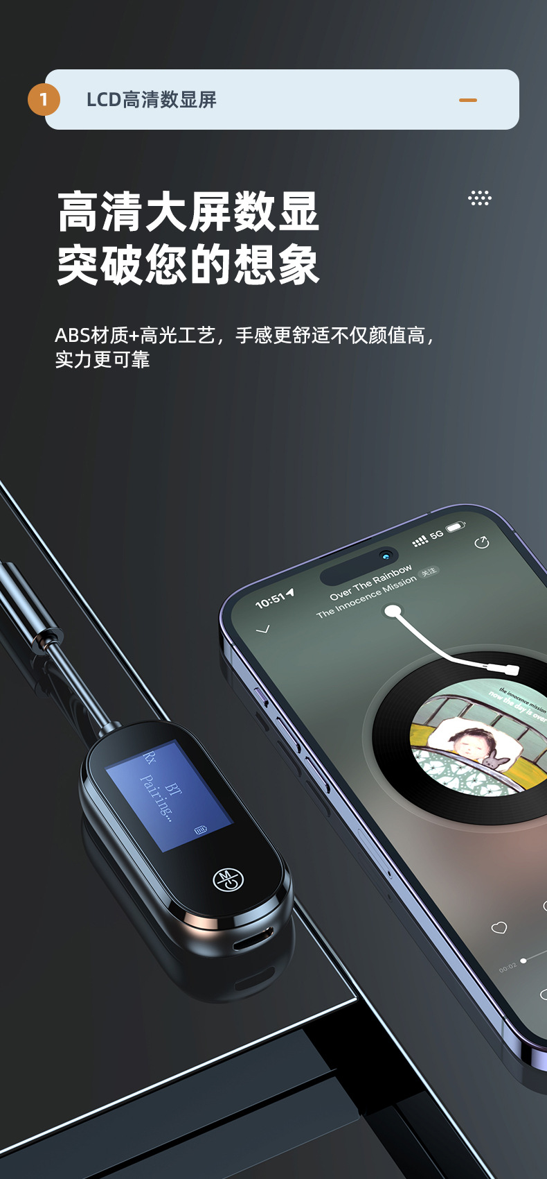 Bluetooth-приемник с дисплеем, Bluetooth-передатчик, беспроводной аудиоадаптер «два в одном», подходит для автомобильной аудиосистемы