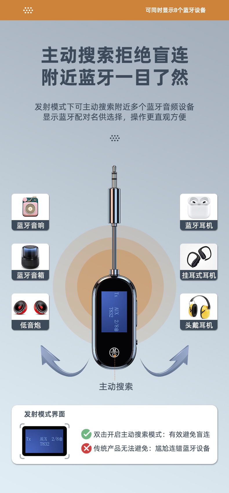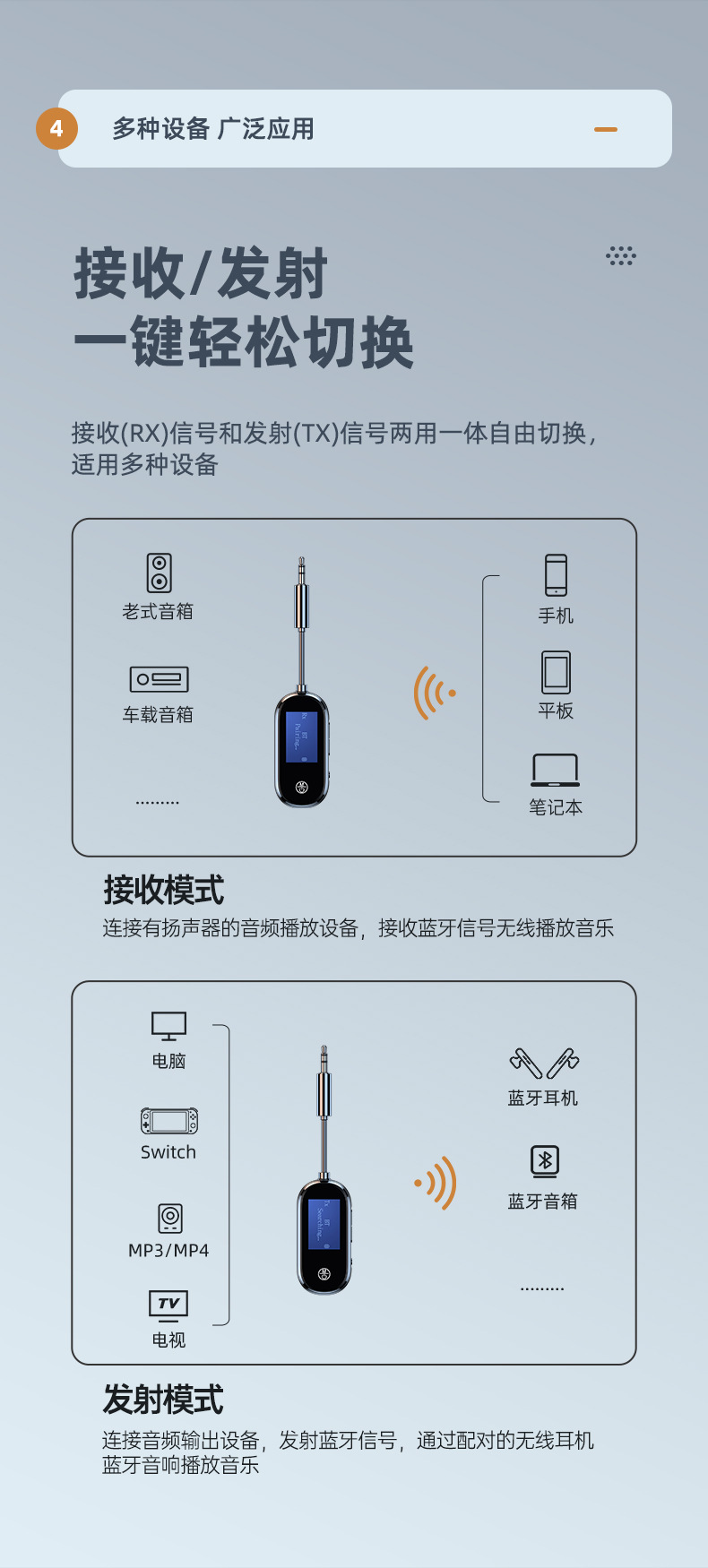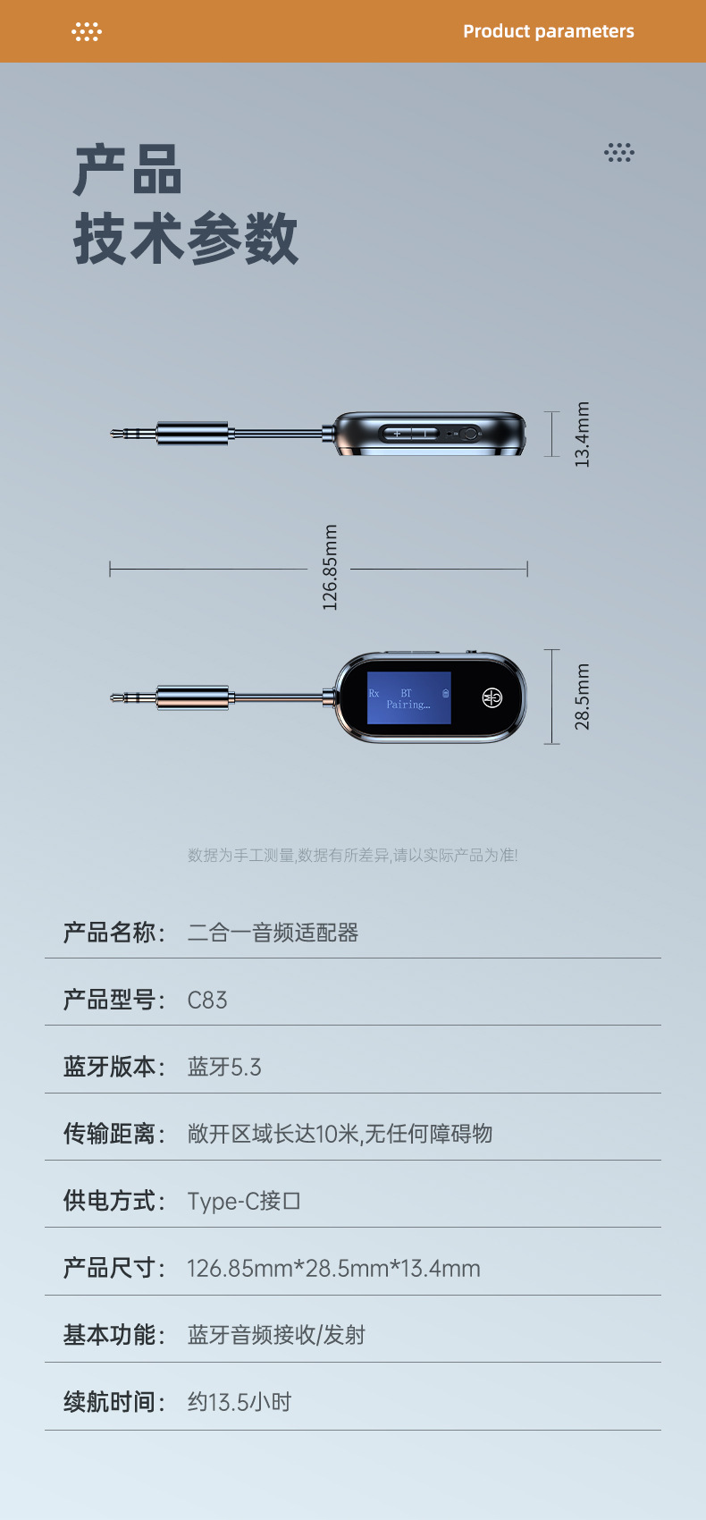 Bluetooth-приемник с дисплеем, Bluetooth-передатчик, беспроводной аудиоадаптер «два в одном», подходит для автомобильной аудиосистемы