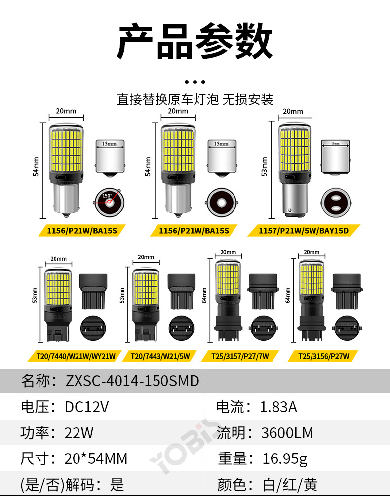 Yobis трансграничный новый автомобильный светодиодный поворотный свет декодирование 1156-4014-150smd автомобильный тормоз T20