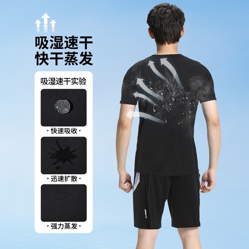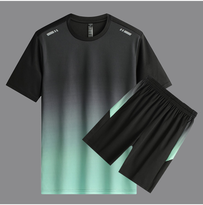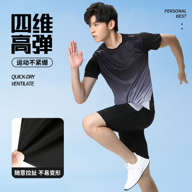 Источник Производители Фитнес-одежда Мужской Следный Шелковый Спортивный Костюм Летняя Футболка с короткими рукавами Бег Баскетбольные Шорты Набор