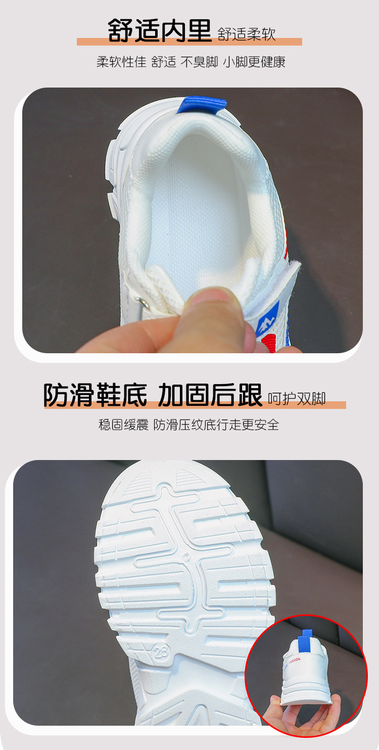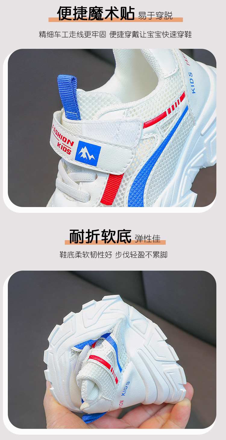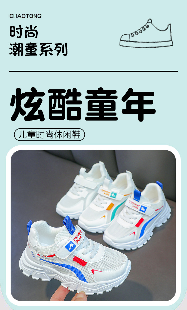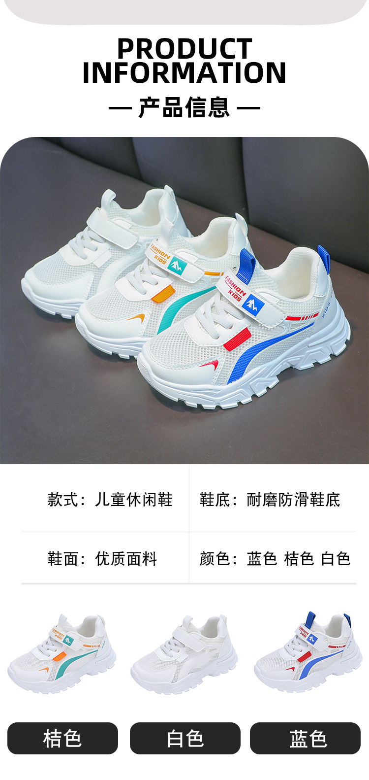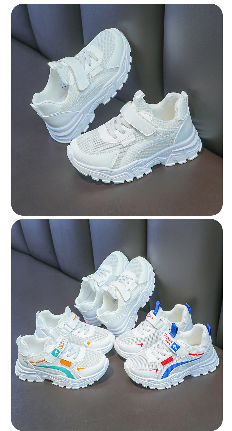 Детская спортивная обувь 2024 весна и лето новая девушка дикая дышащая белая обувь для мальчиков повседневная белая обувь