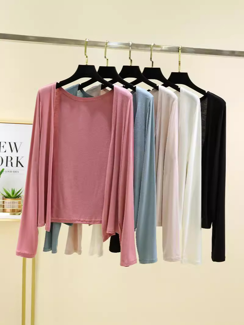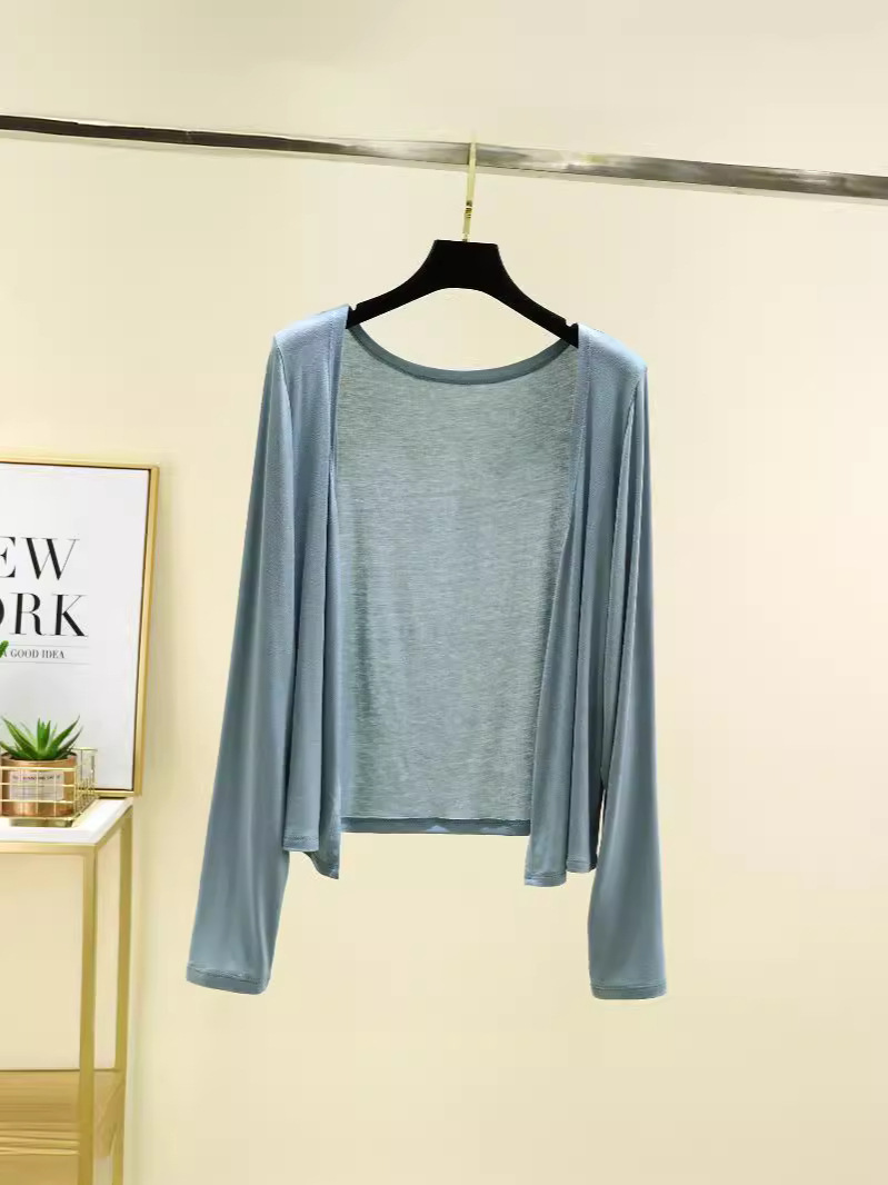 Модаль солнцезащитный кардиган женский летний тонкий длинный рукав снаружи свитер куртка свободная повседневная плечо