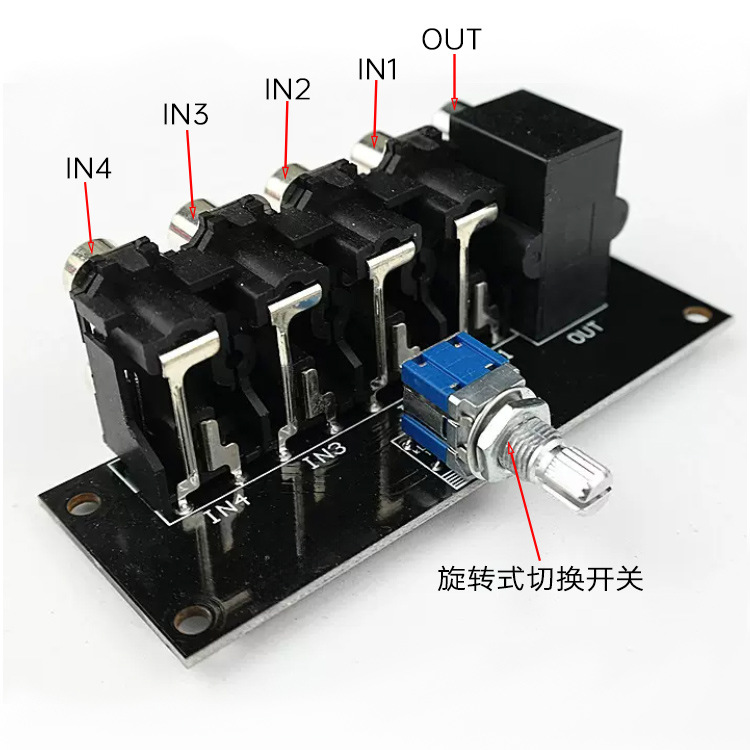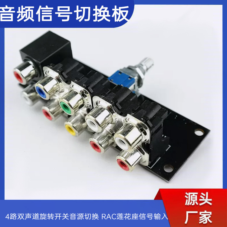 音频信号切换板 4路双声道旋转开关音源切换 RAC莲花座信号输入