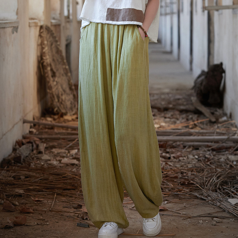 24 осенние женские брюки Tiansi конопля с галстуком, элегантные и прохладные дома