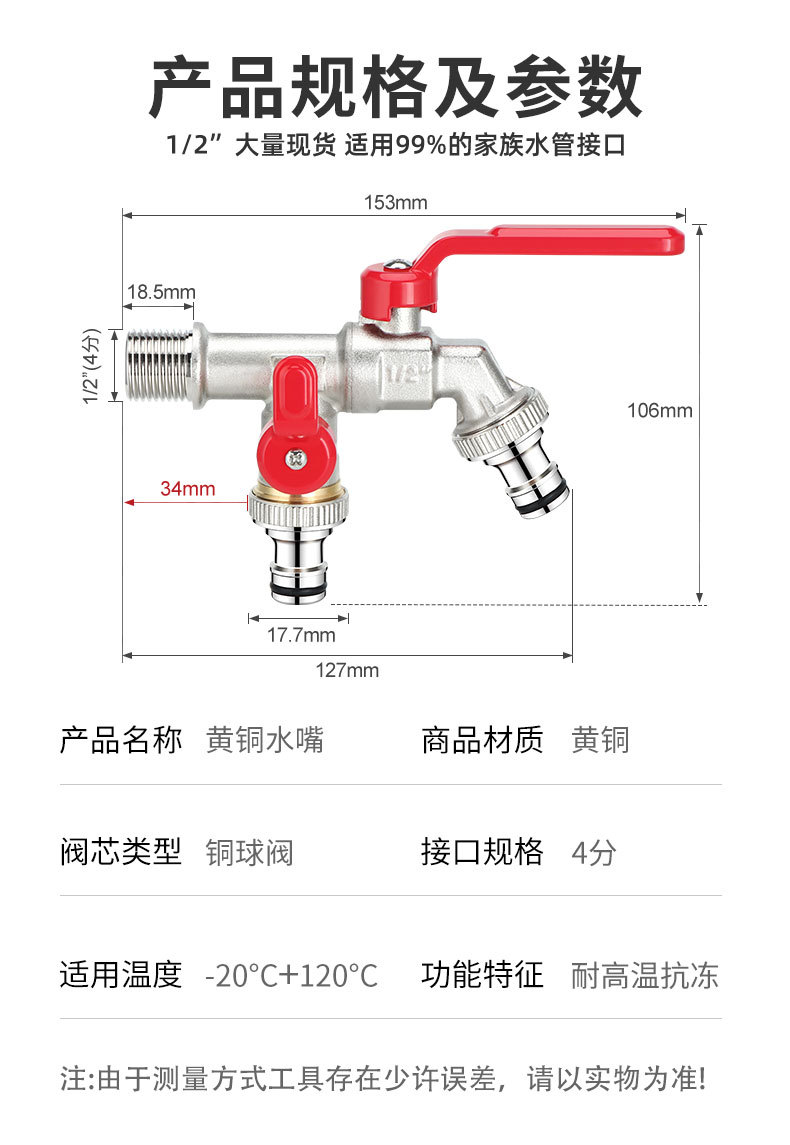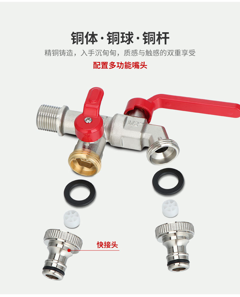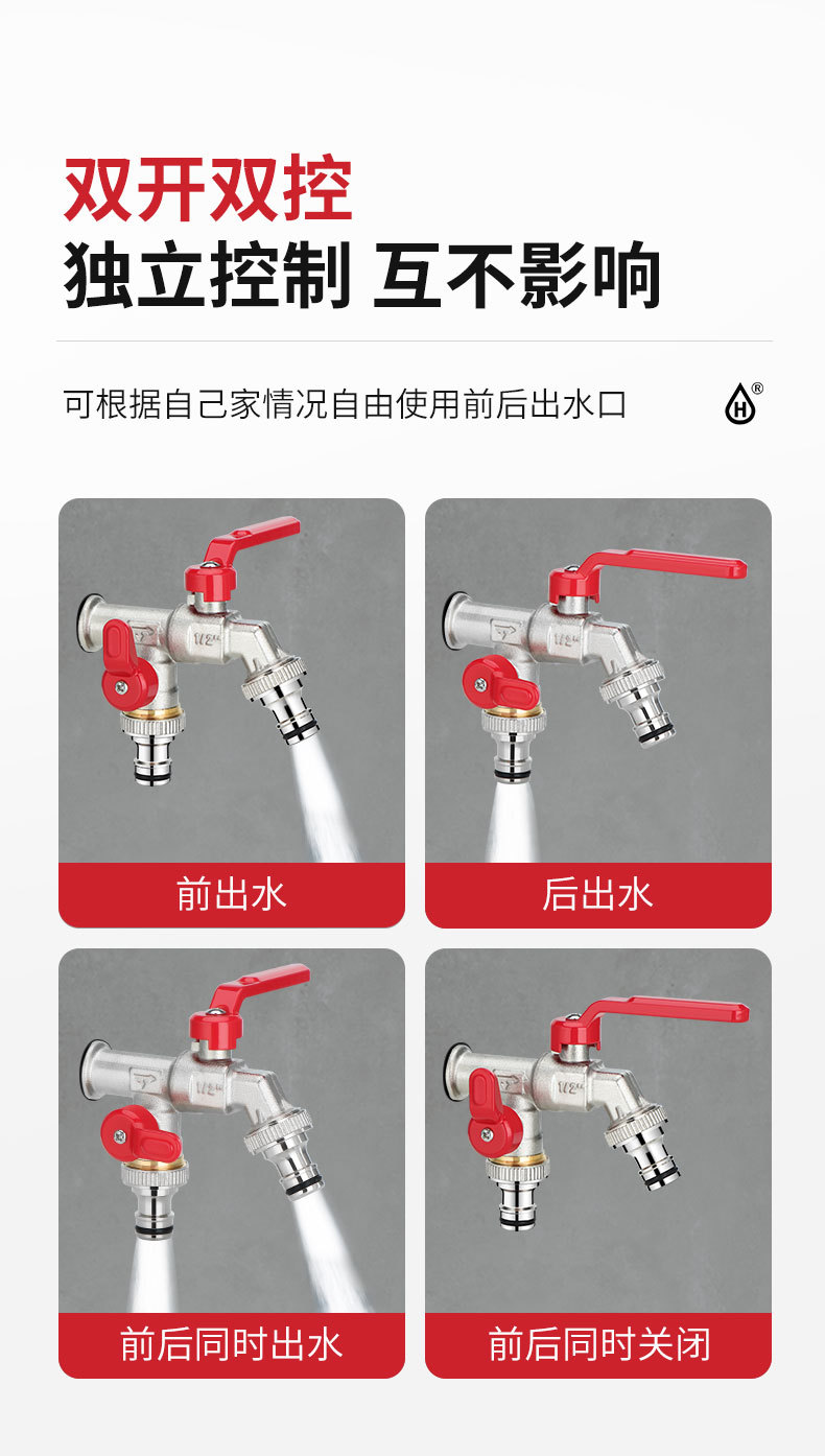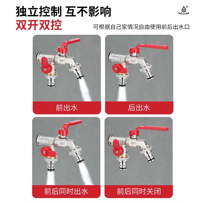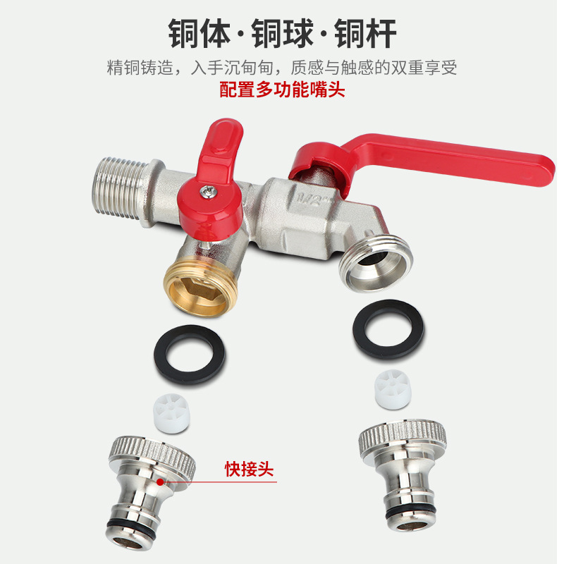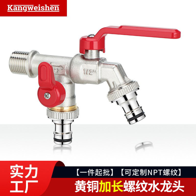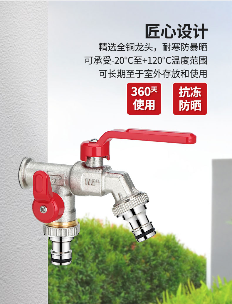 全铜镀镍龙头 家用洗衣机水龙头 4分双出水嘴 铜球铜杆 防冻裂长柄花园 冷热水嘴 厨房纯铜 单冷家用过滤 阀芯厨房过滤 一进二出 双控 快开双出水嘴 水嘴铜色 花园户外防冻
