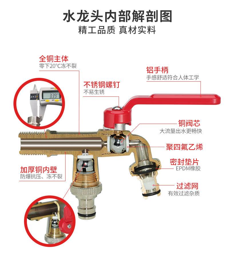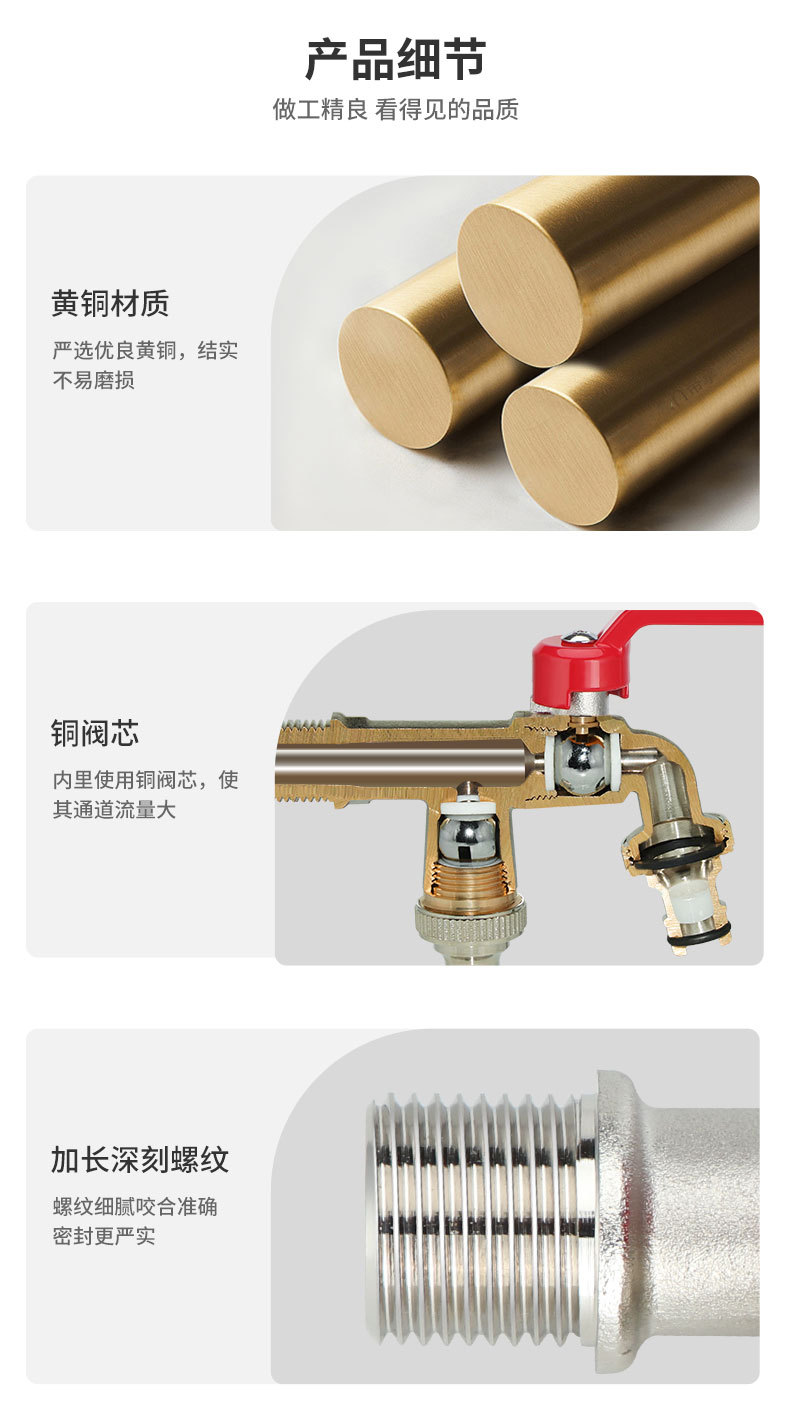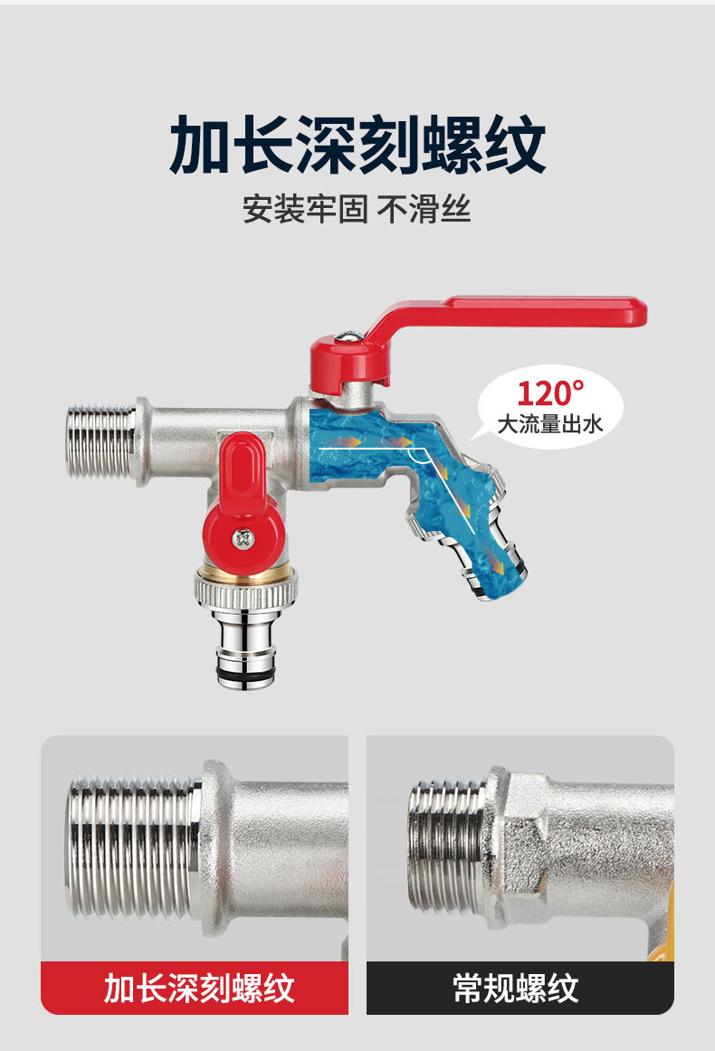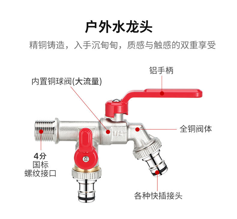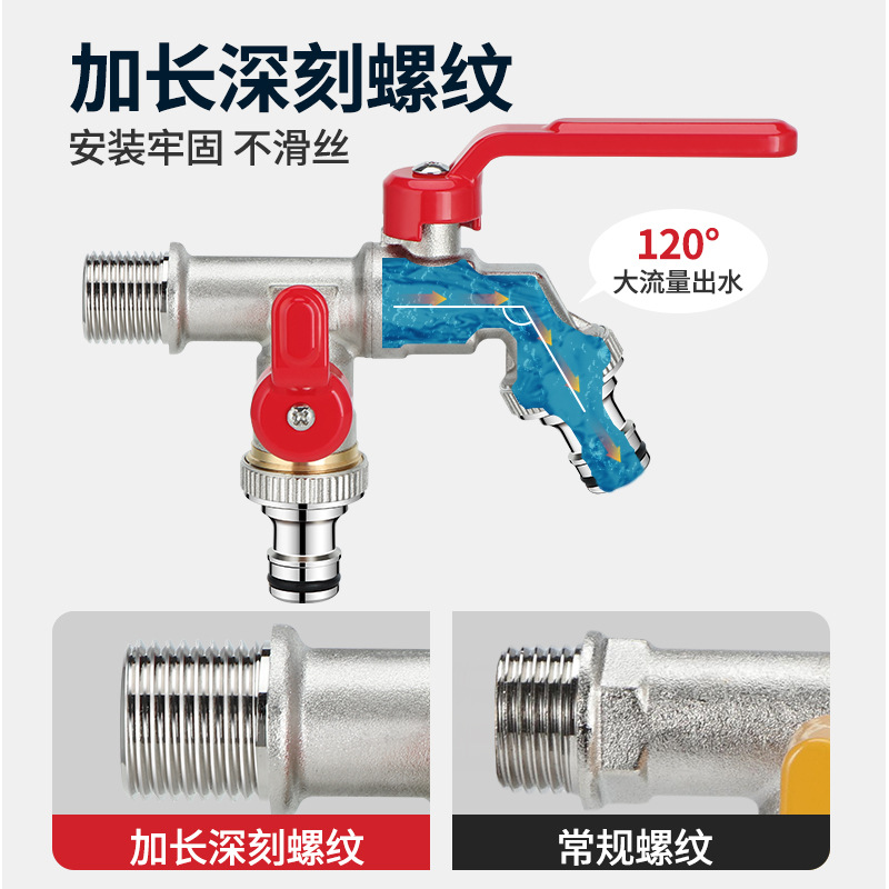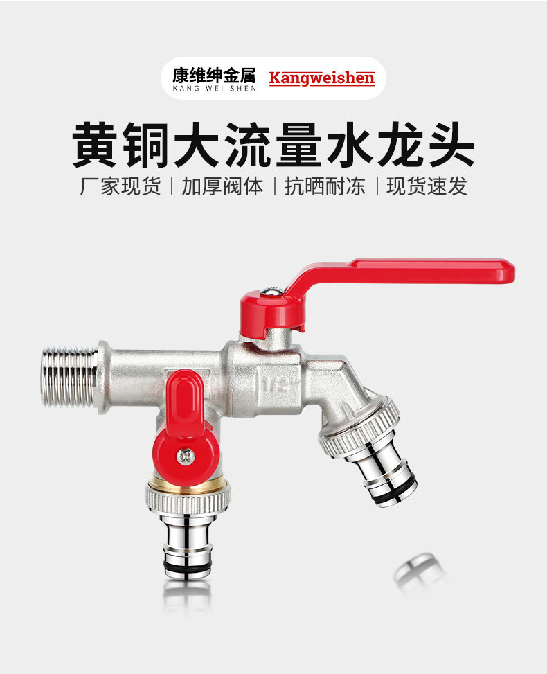 全铜镀镍龙头 家用洗衣机水龙头 4分双出水嘴 铜球铜杆 防冻裂长柄花园 冷热水嘴 厨房纯铜 单冷家用过滤 阀芯厨房过滤 一进二出 双控 快开双出水嘴 水嘴铜色 花园户外防冻