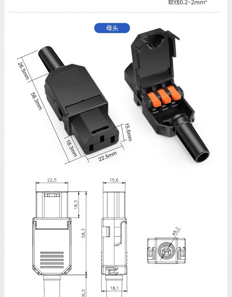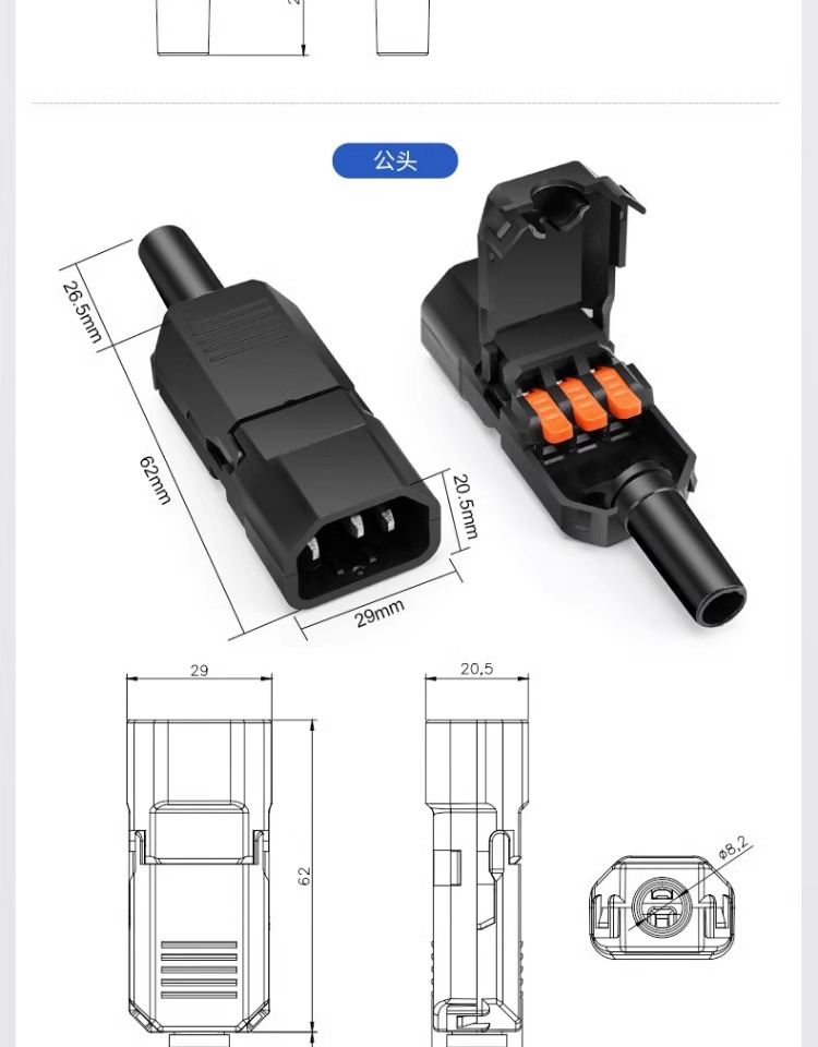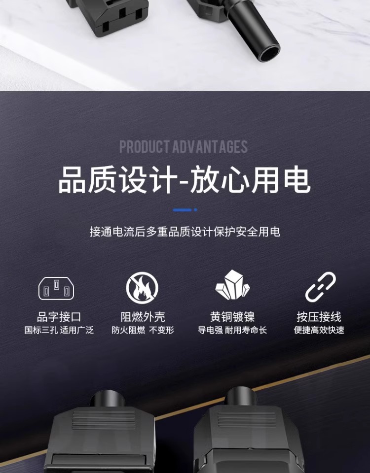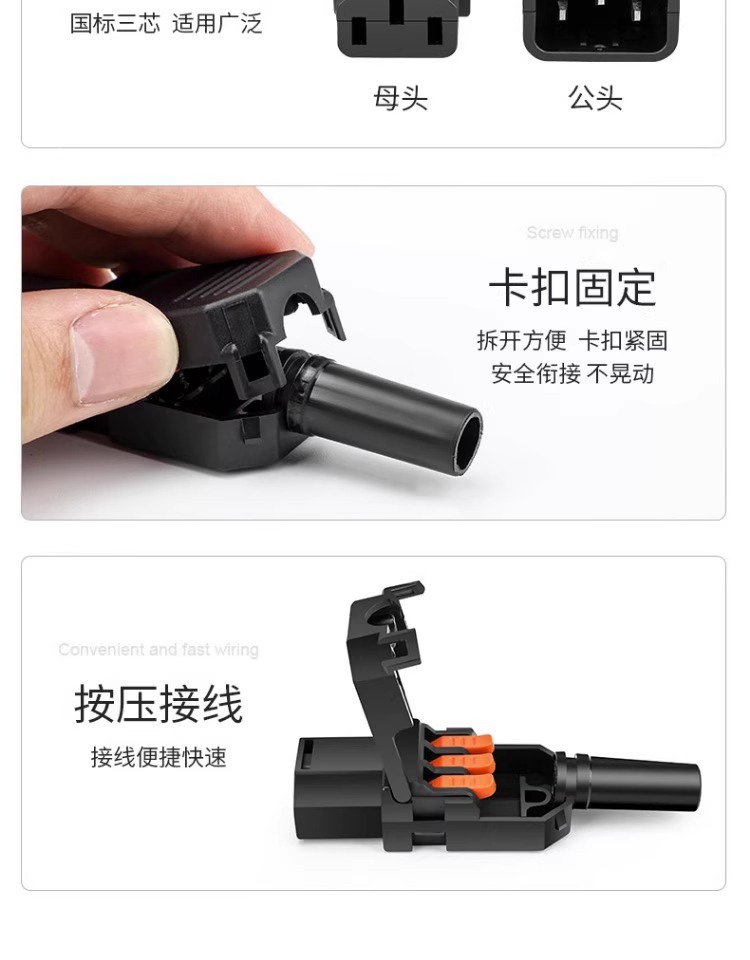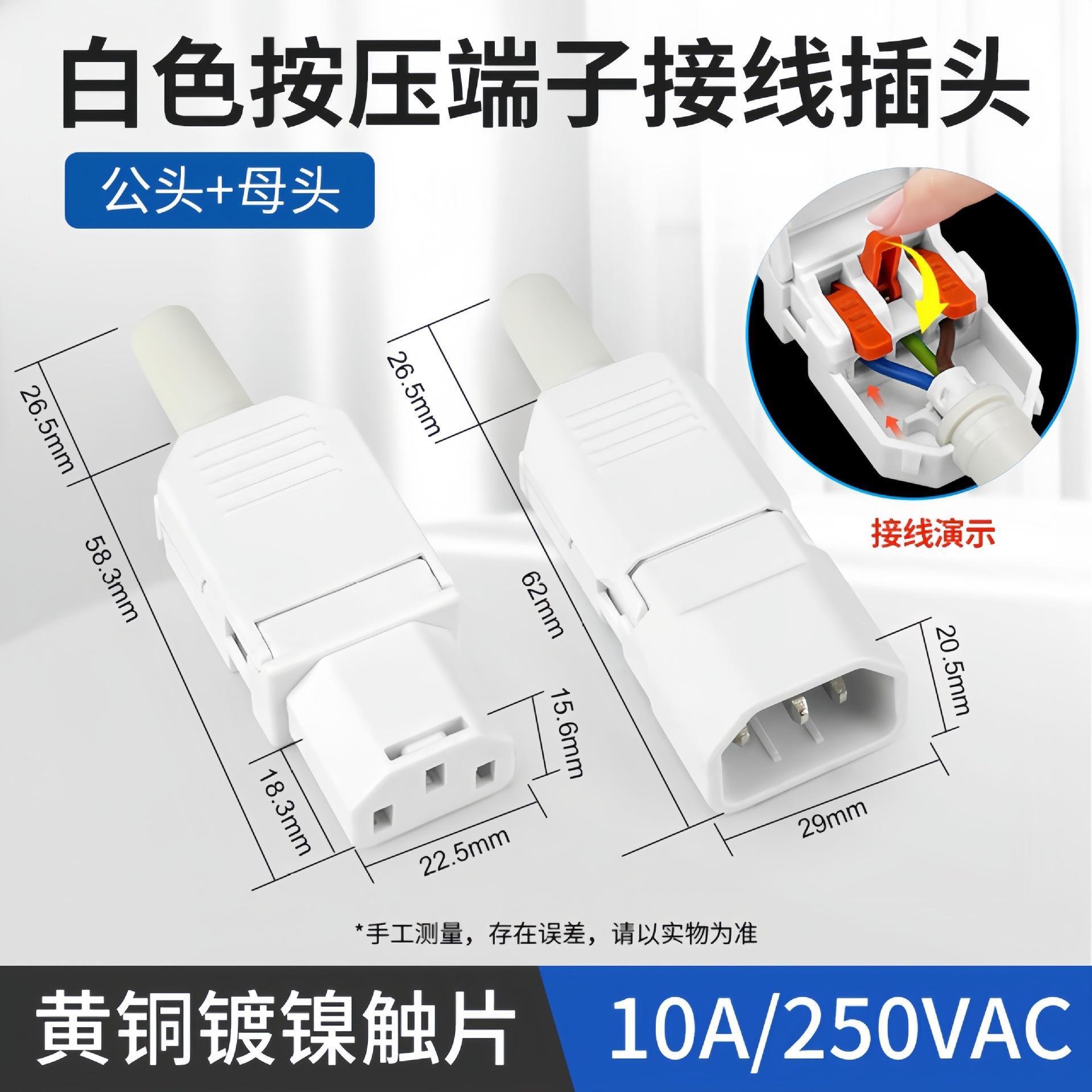 Новый клеммный прижимной кабель AC вилка питания 10A/250V трехлунный трехконтактный штепсельный штекер