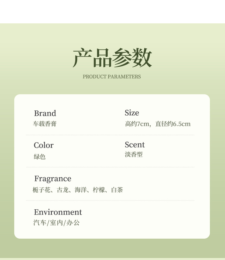 【产品特点】:小巧便携,坚固耐用,独特香调