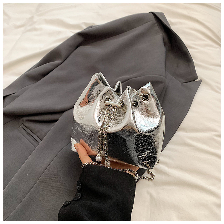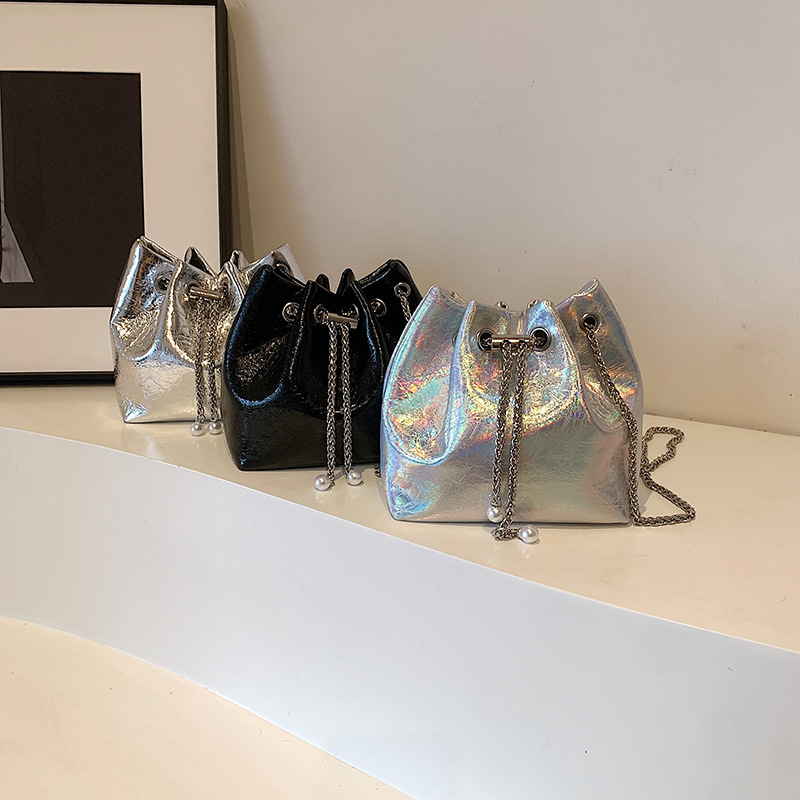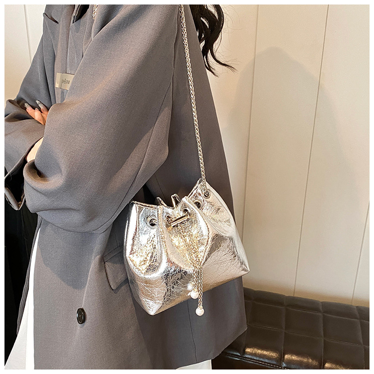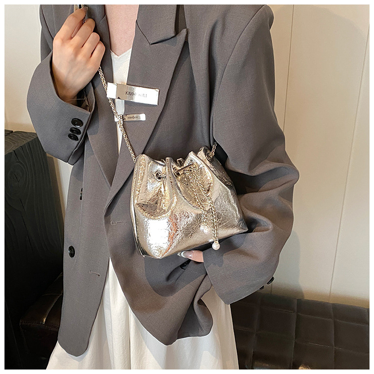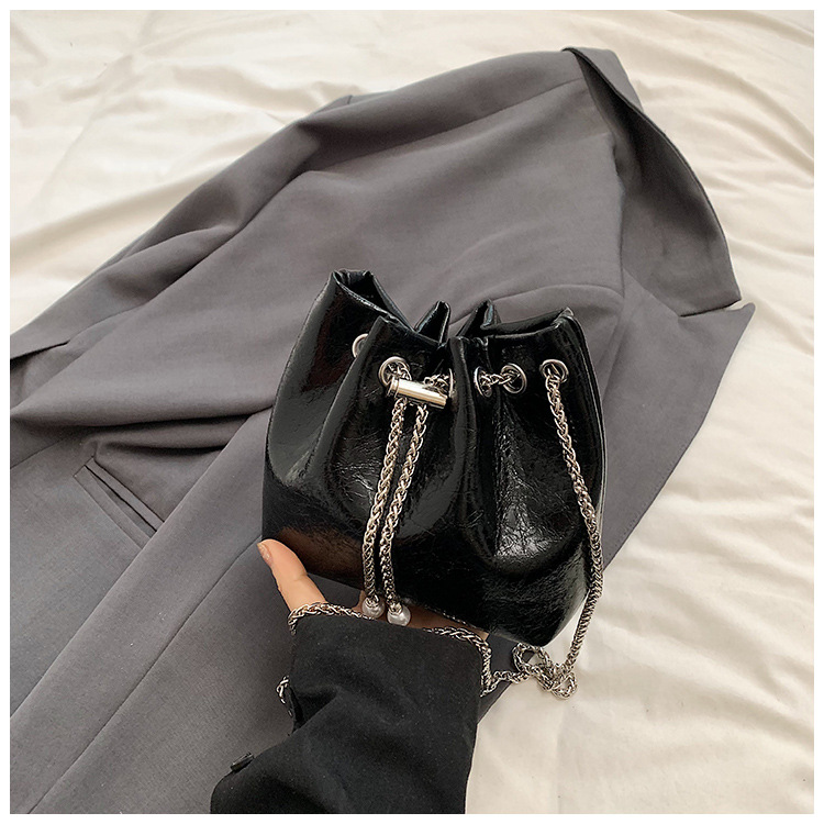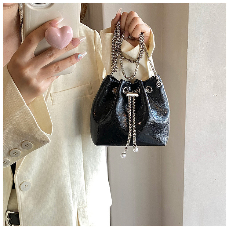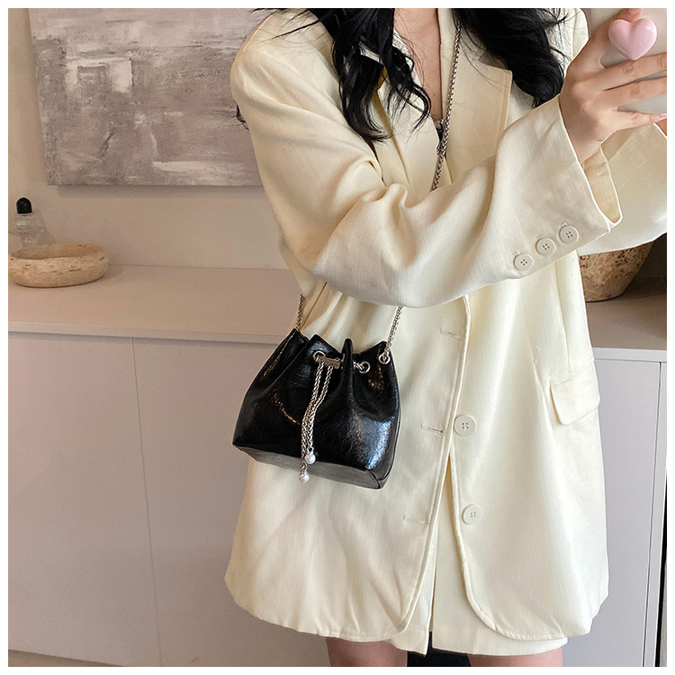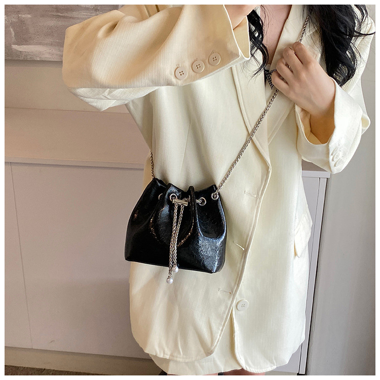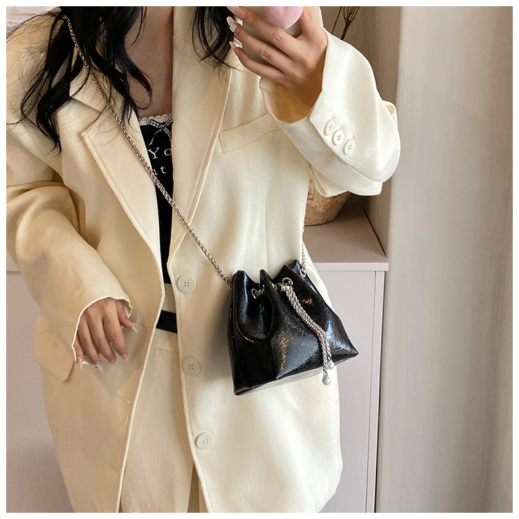 Элитная, стильная мини-сумочка для телефона в стиле Chanel, новая модель весна 2025, глянцевая сумка-ведро через плечо с цепочкой.