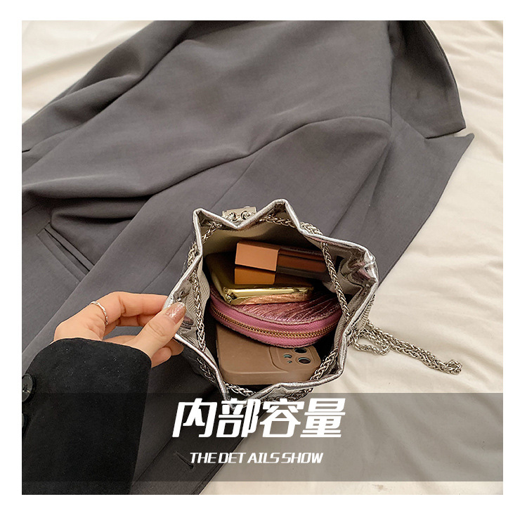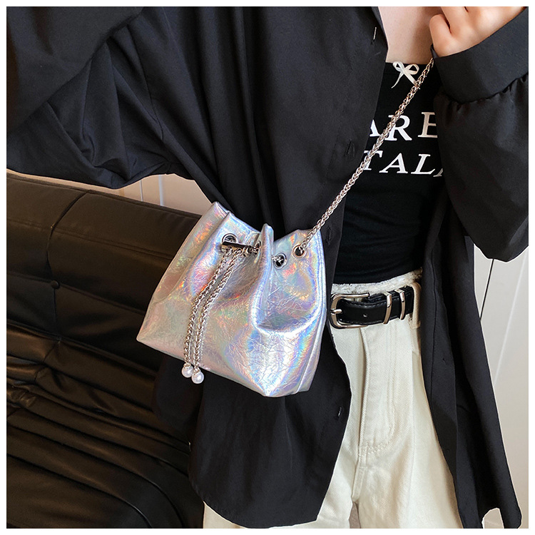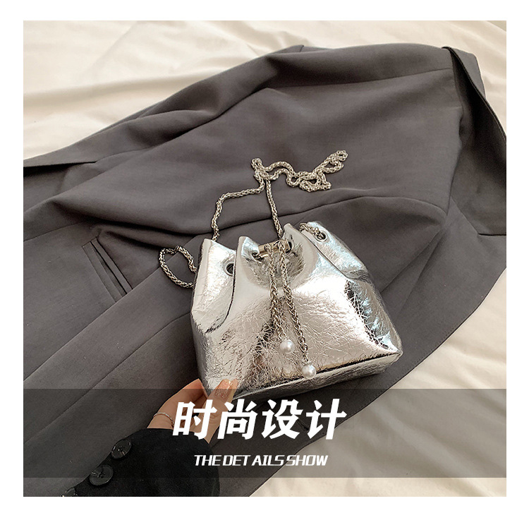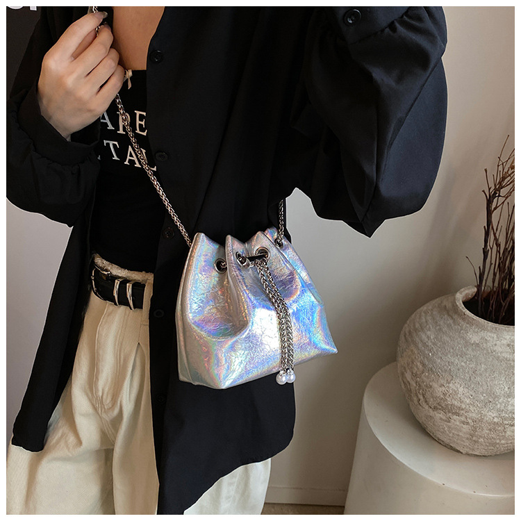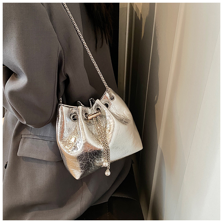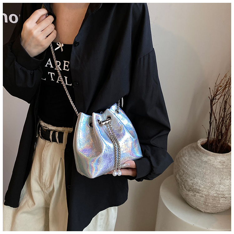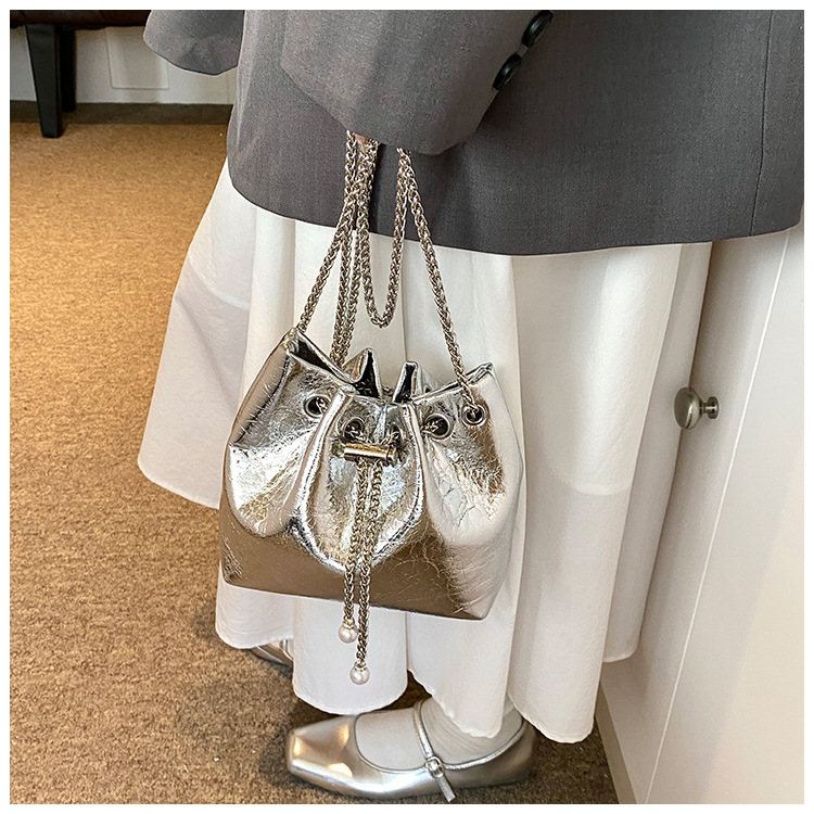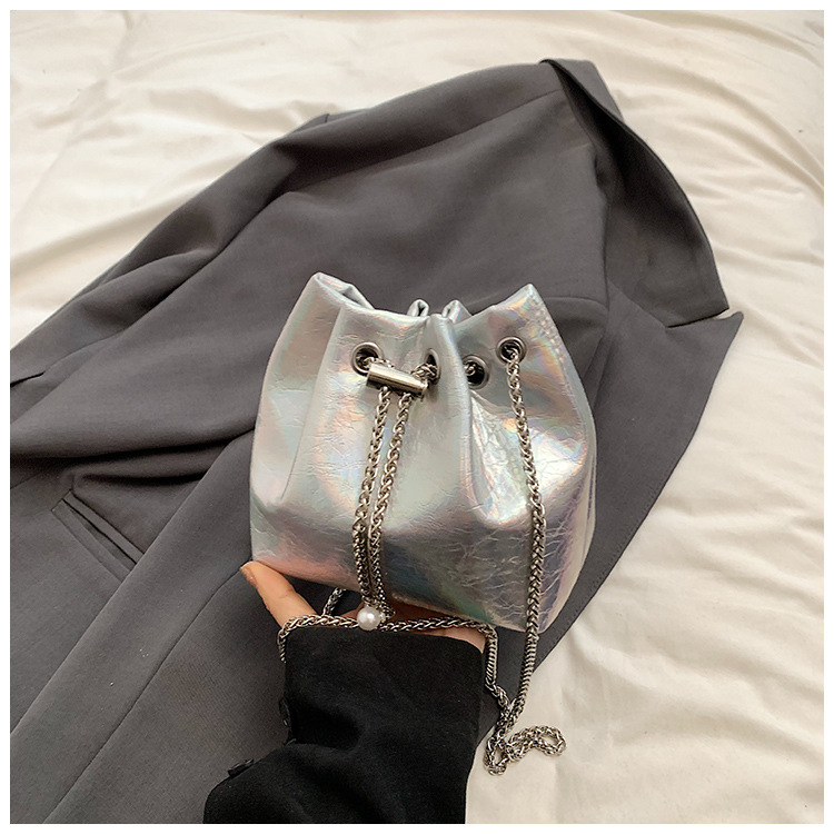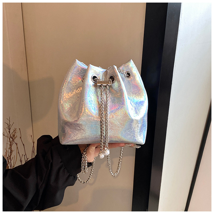 Элитная, стильная мини-сумочка для телефона в стиле Chanel, новая модель весна 2025, глянцевая сумка-ведро через плечо с цепочкой.