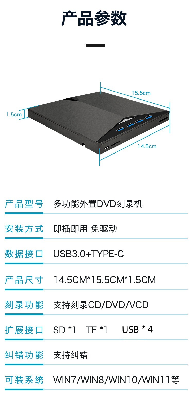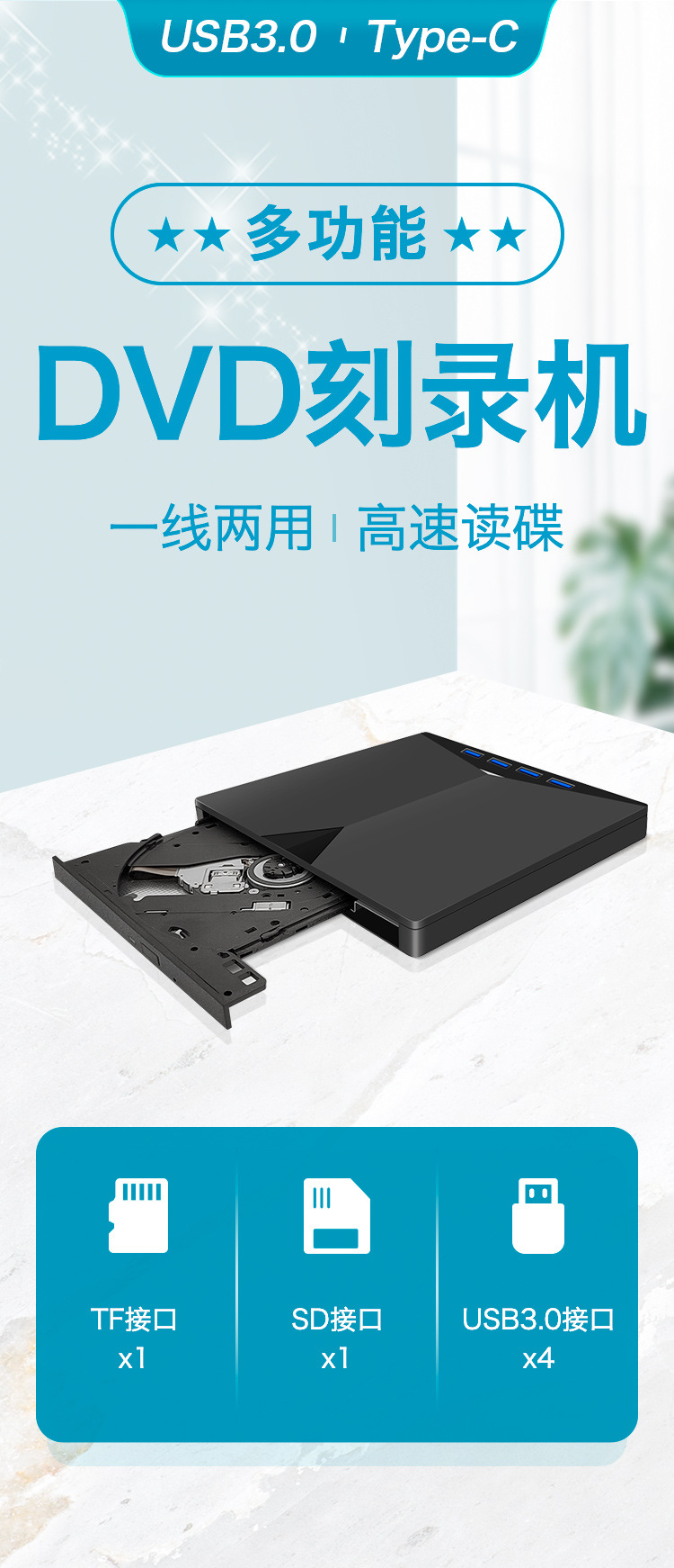 7-в-1 USB3.0 Внешний DVD-рекордер TYPE-C многофункциональный CD-привод расширенный оптический привод