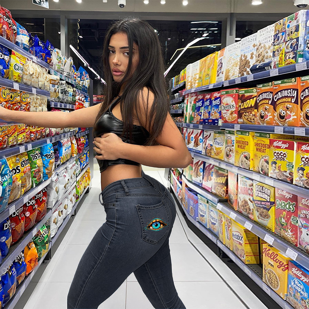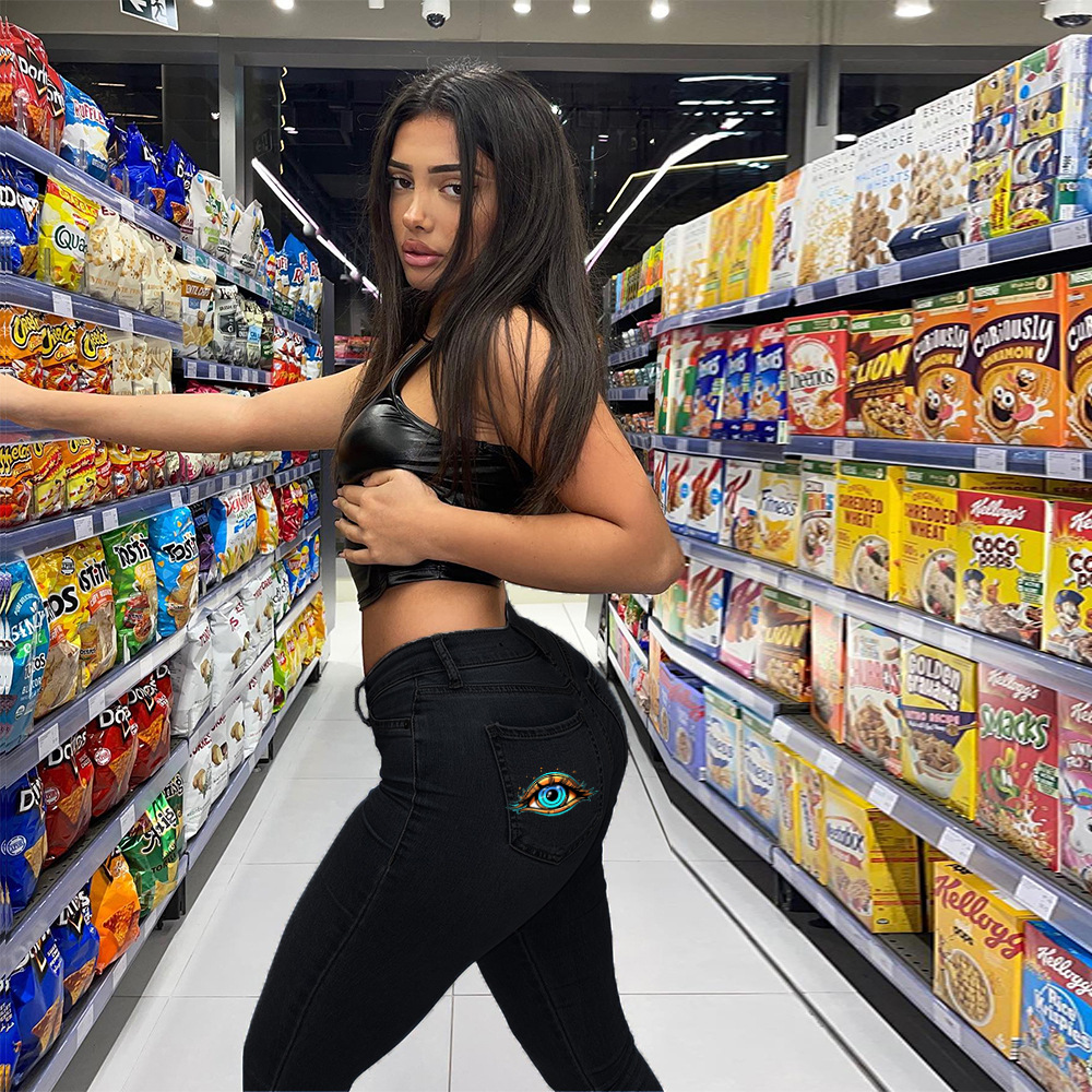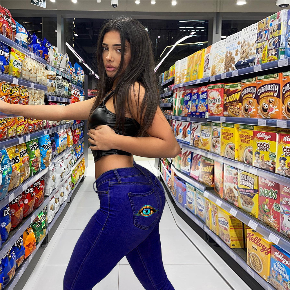 Европейские и американские джинсы с принтом глаз джинсы большого размера женские брюки карандаш сексуальная обтягивающие бедра JN09-331