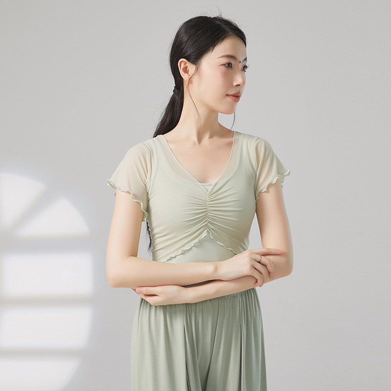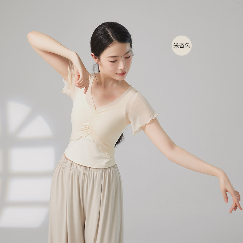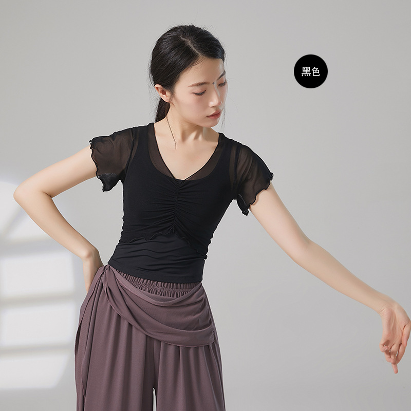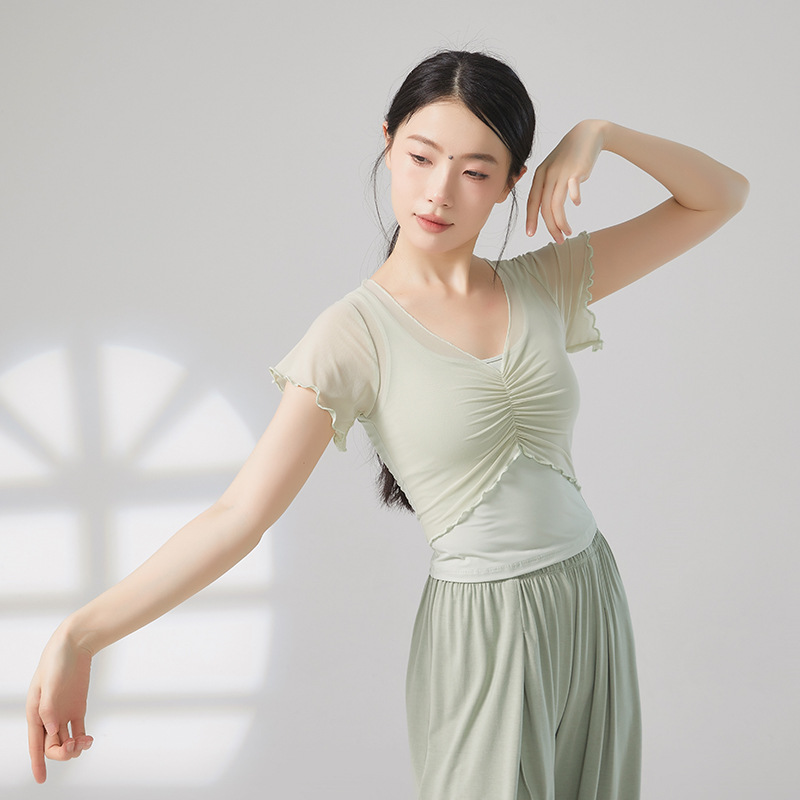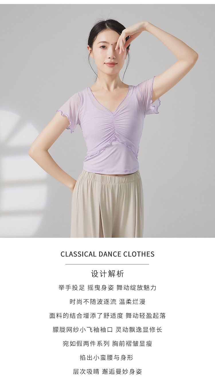 Классический танец с короткими рукавами для взрослых Новый маленький летающий рукав топ женский танец Китай элегантный